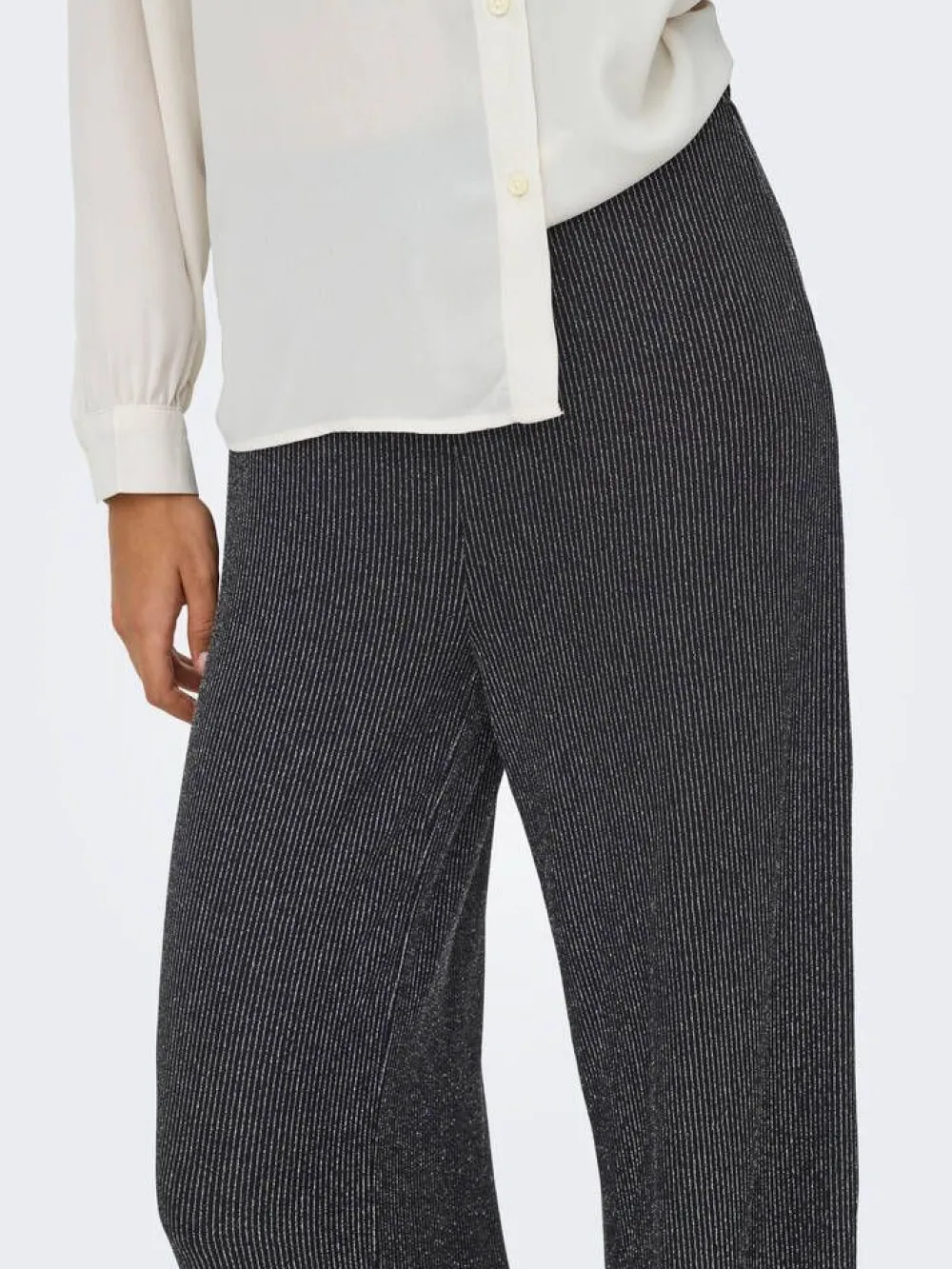 Näyttävät ja mukavat kimaltavat naisten housut, joissa joustava vyötärö ja leveät lahkeet tuovat rentoa eleganssi…