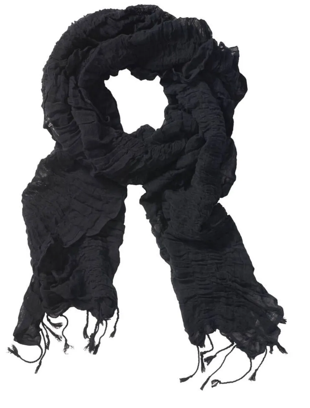 Yksivärinen puuvillahuivi rypytetyllä pinnalla. Huivin molemmissa päissä on hapsukoristeet.Lisää tietojaMateriaali…