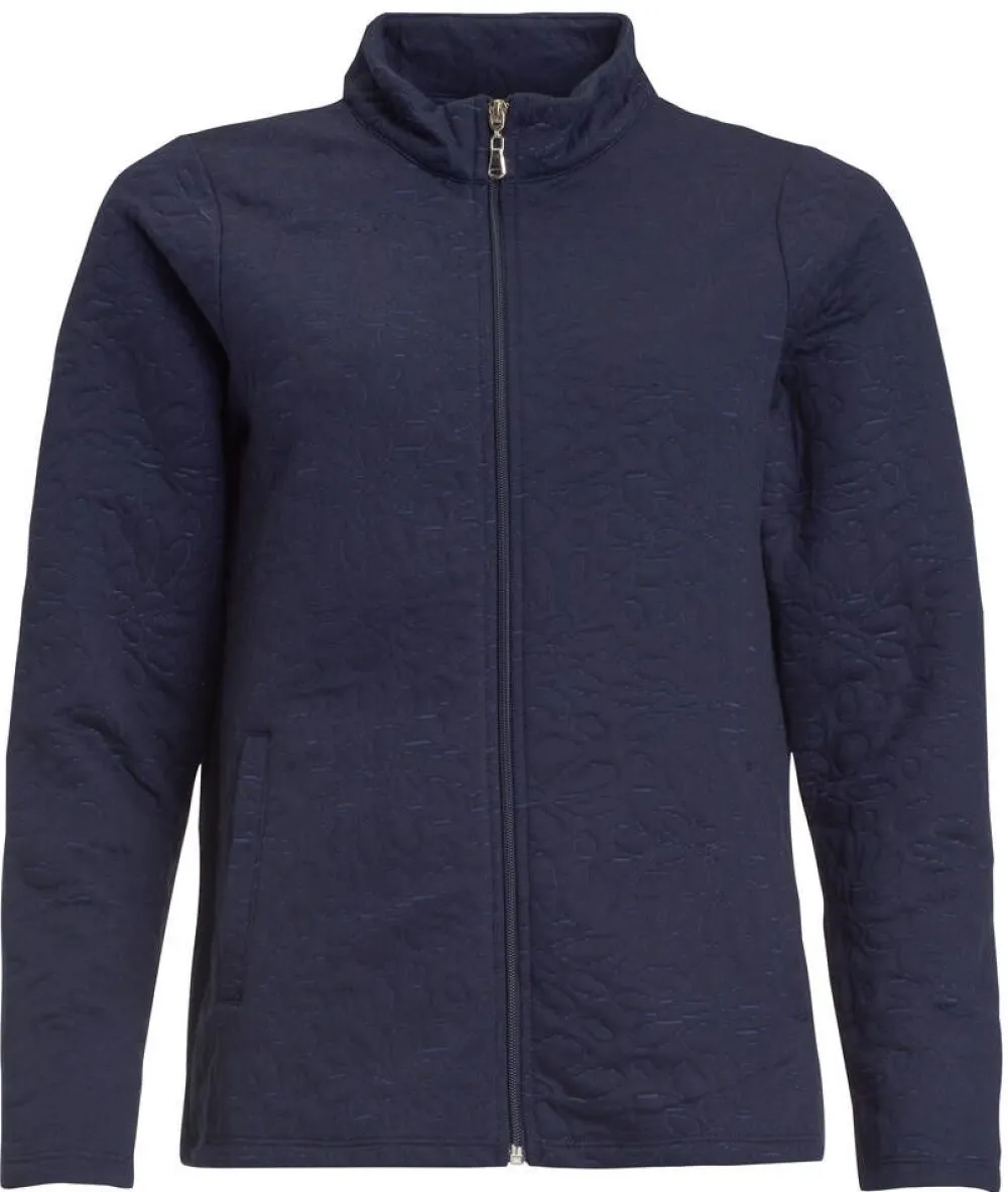 Tikkikuvioitu jakku pystykauluksella ja kätevällä vetoketjukiinnityksellä. Edessä on pienet avotaskut.Lisää tieto…