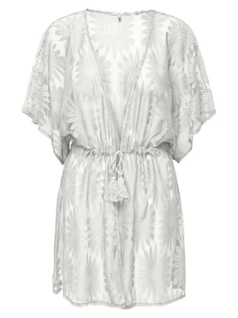 Kesäinen edestä avoin pitsipusero, jossa on vyötäröllä solmittavat narut. Upea täydennys esimerkiksi rantalookkii…