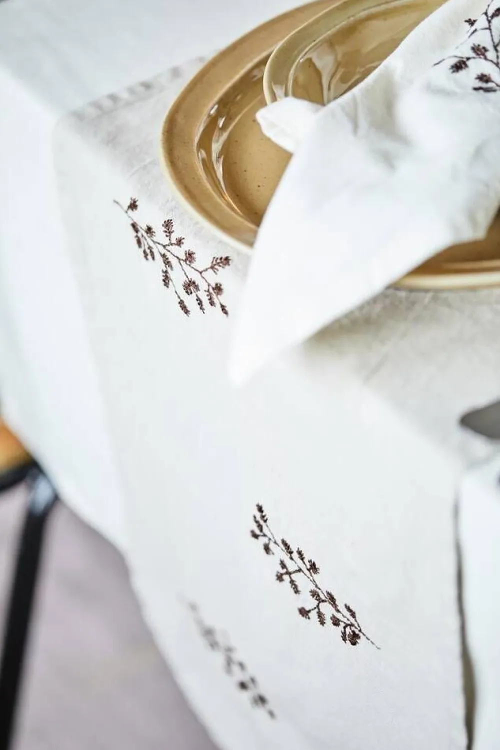 Kankainen kaitaliina broderatuilla oksillaLisää tietojaHoito-ohjeet:Pesu 40 asteessaMateriaali:KangasMitat:30×160 cmTu…