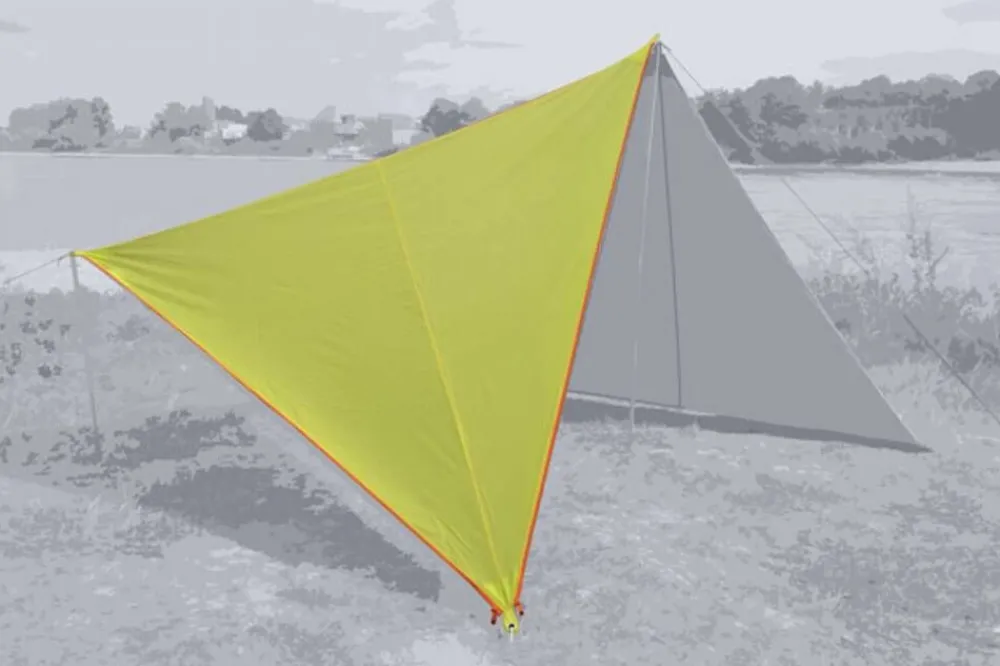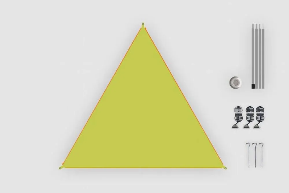 Patentoitu 250x250x250 cm kokoinen katoskangas, jossa vetoketju jokaisella kantilla, joten kolmion voi liittää yhteen …