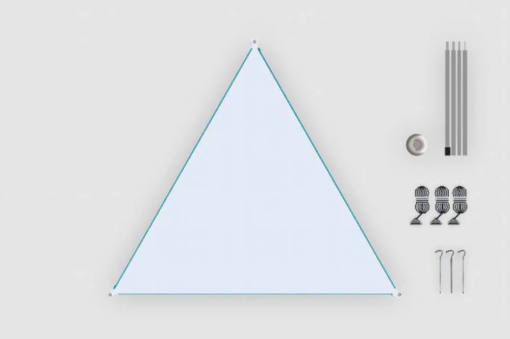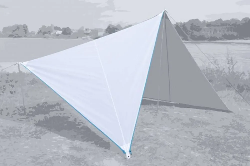 Patentoitu 250x250x250 cm kokoinen katoskangas, jossa vetoketju jokaisella kantilla, joten kolmion voi liittää yhteen …