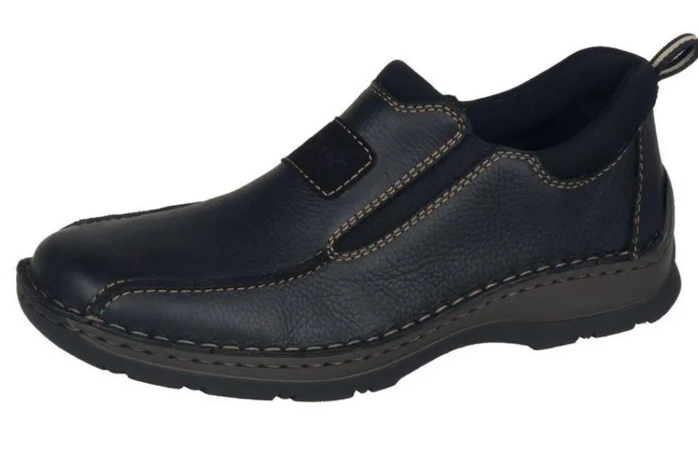 Riekerin nauhattomat kävelykengät tilavalla lestillä. Sivuilla olevat venykkeet helpottavat kenkien jalkaan pukemista…