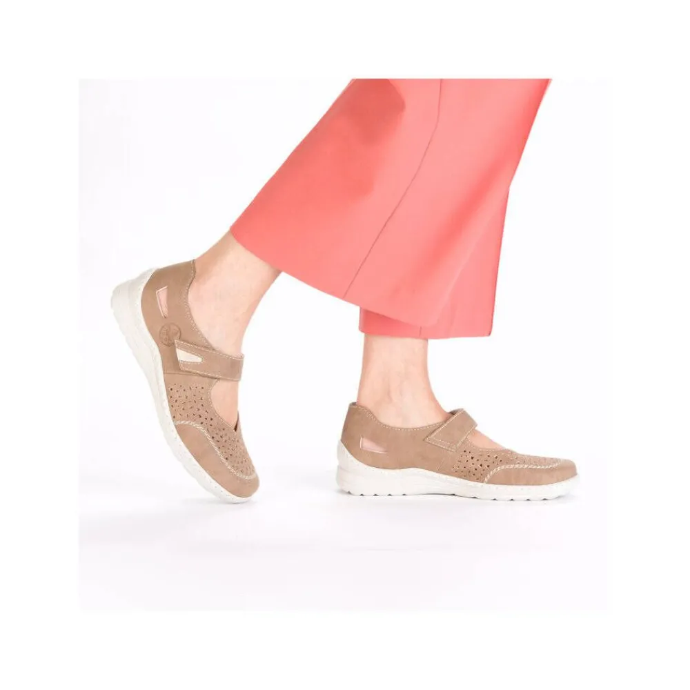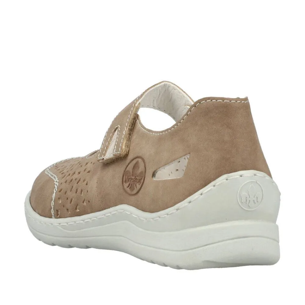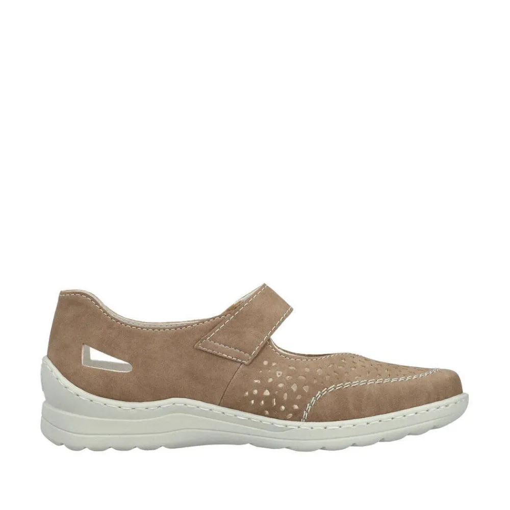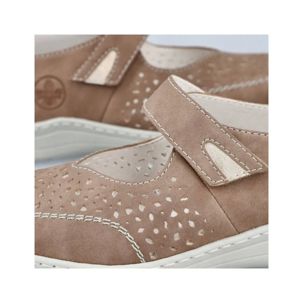 Naisten reikäkuvioidut kävelykengät joissa tarrakiinnitys, kiilakorko ja pehmeät pohjalliset. Leveä lesti.Lisää t…
