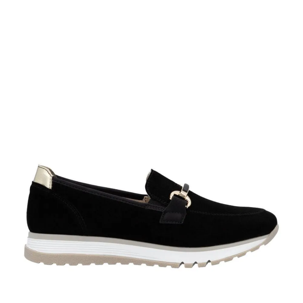 Siistit mokkanahkaiset kävelykengät, joissa on pukemista helpottavat sivuvenykkeet, kultaiset koristesoljet sekä irro…