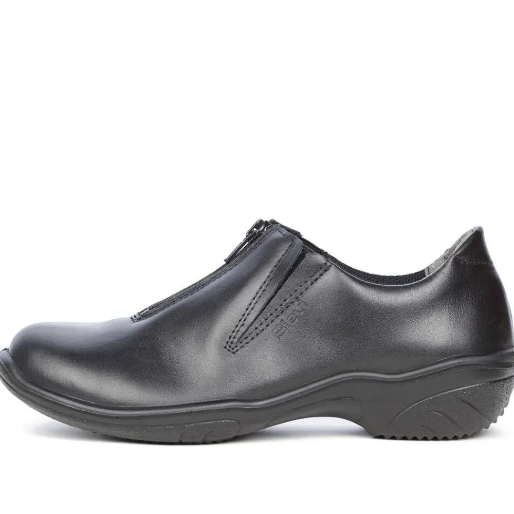 Naisten nahkapintaiset kävelykengät vetoketjukiinnityksellä. Venykkeet kenkien sivuilla helpottavat kenkien jalkaan p…
