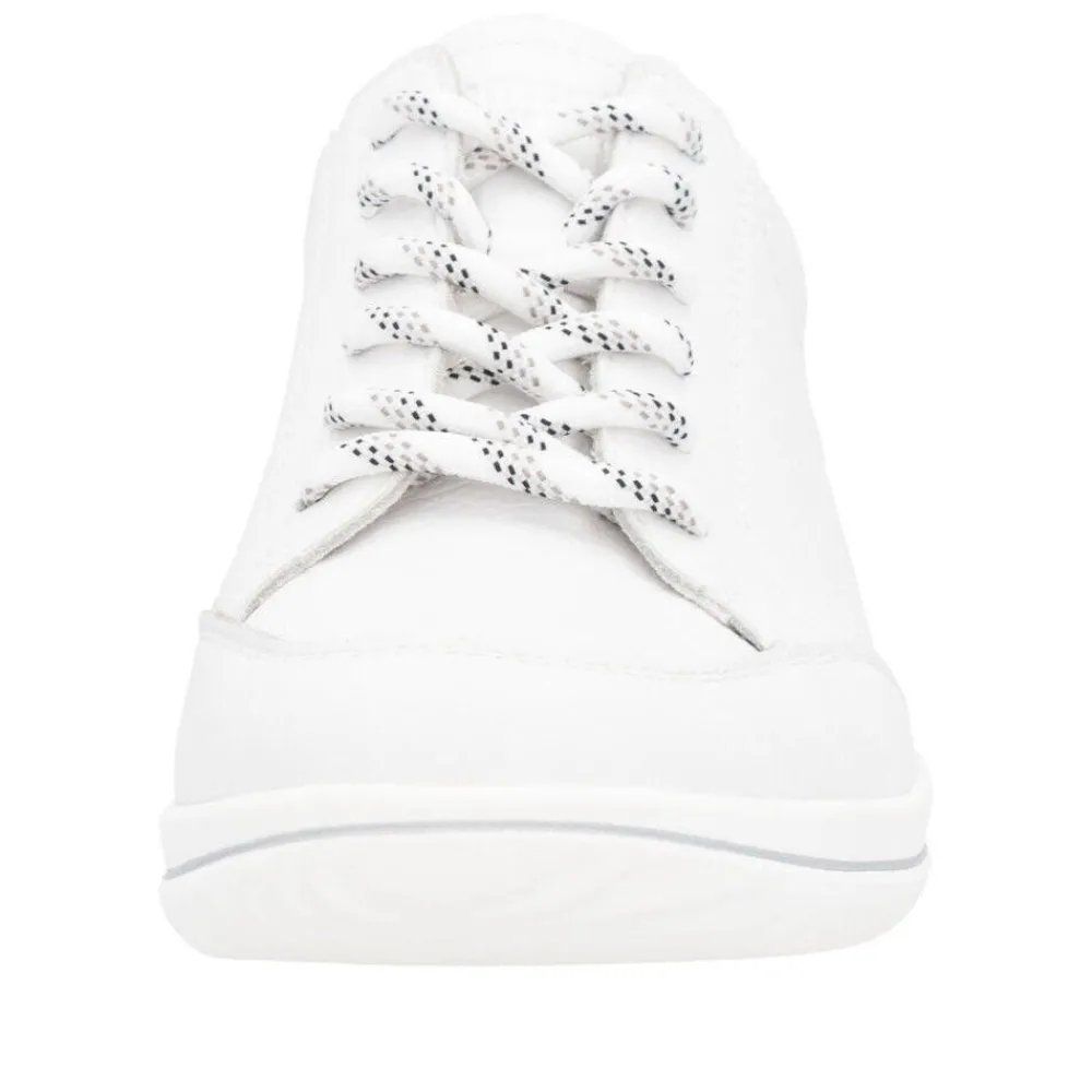 Naisten kokovalkoiset pintanahkaiset kävelykengät joustonauhoilla, vaihtonauhoilla sekä irrotettavilla pehmeillä tek…