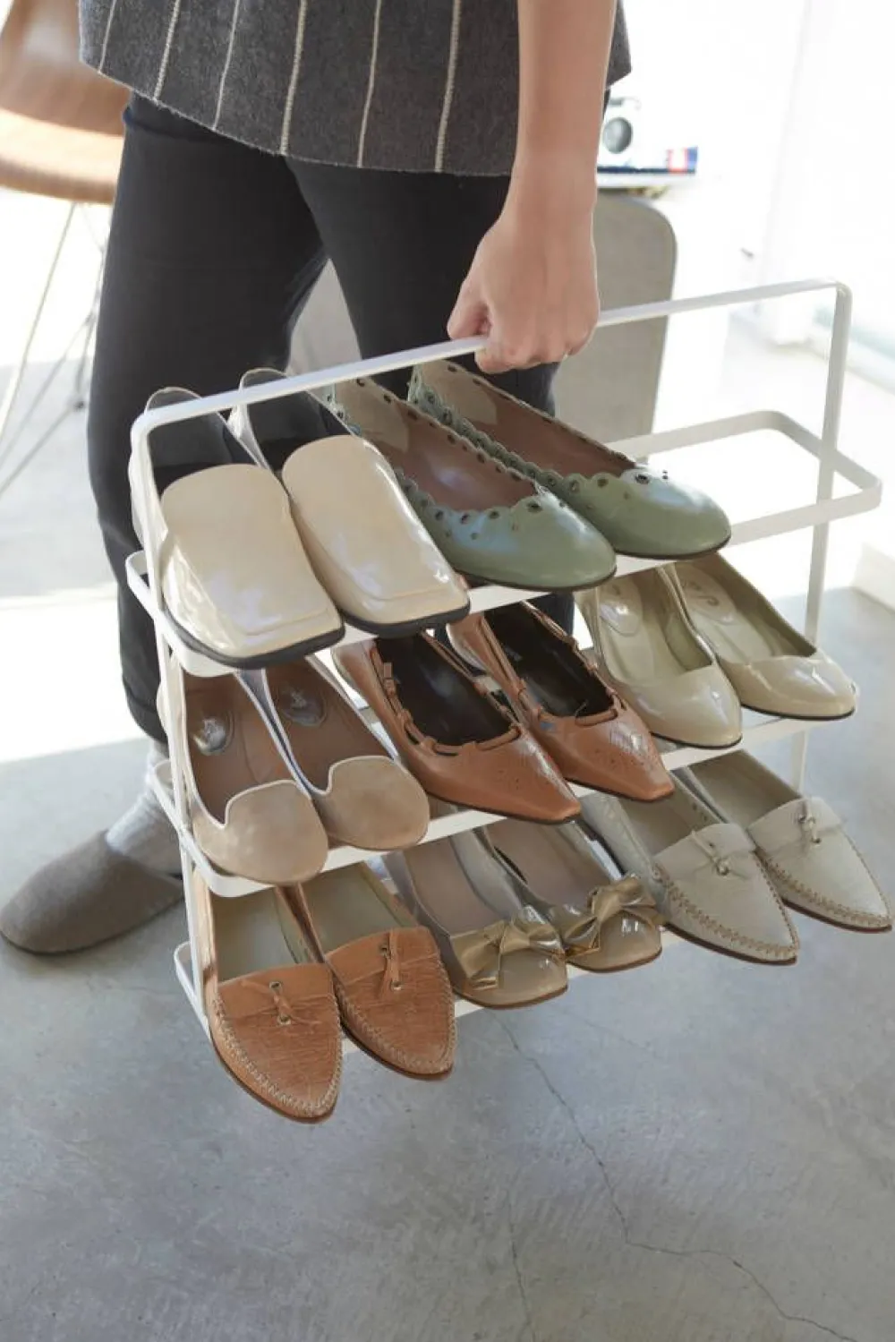 Tower-sarjan sirorakenteinen ja minimalistinen kenkäteline sopii monenlaiseen sisustustyyliin. Päällä olevan kädens…