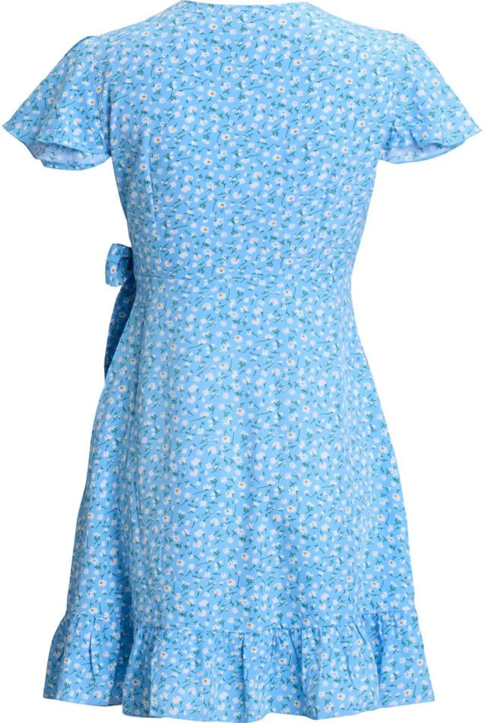 Naisellinen ja kesäinen kietaisumekko lyhyillä enkelihihoilla ja helman rypytyksillä.Lisää tietojaRinnanympärys (k…