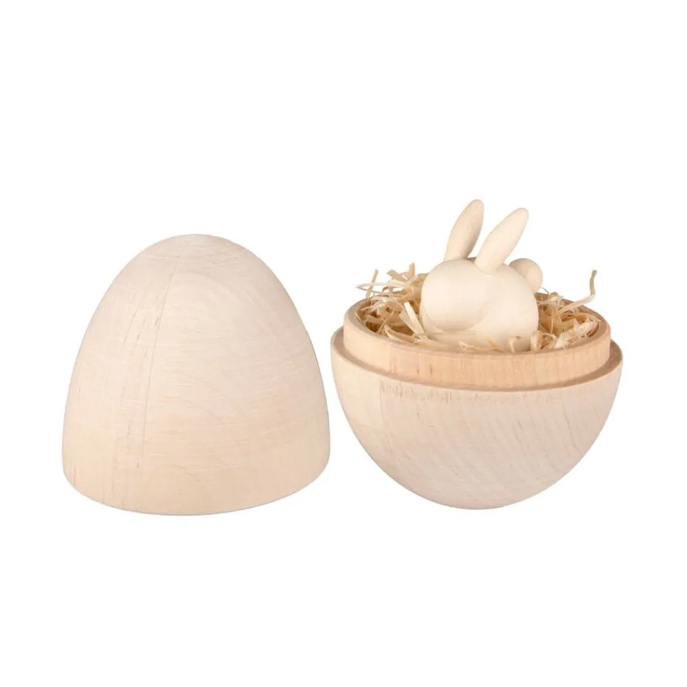 Puinen yllätysmuna kätkee sisäänsä suloisen yllätyksen.Lisää tietojaMateriaali:Vaahtera, koivuMitat:Pituus 14 cm…