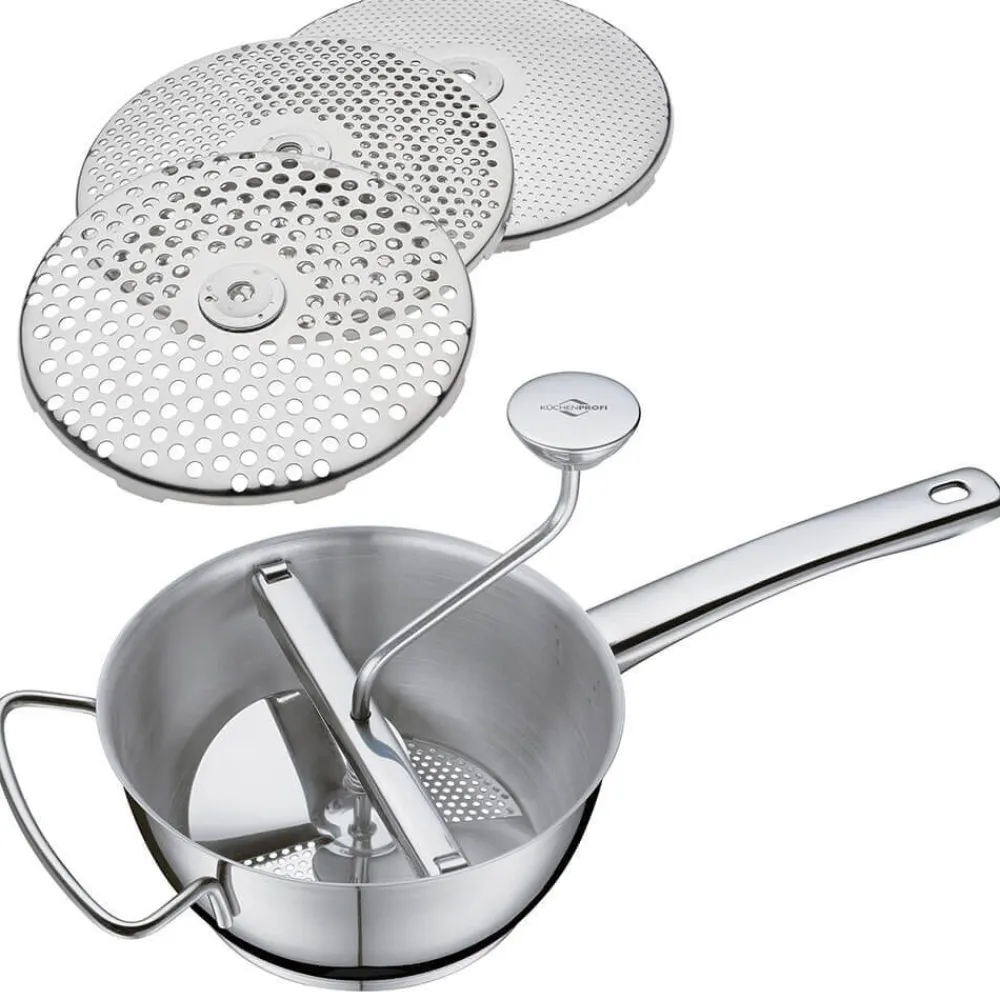 | Aseta kypsennetty, soseutettava vihannes tai hedelmä kulhoon ja käännä kammesta. Valmis sose putoaa alla olevaan kulhoon. |