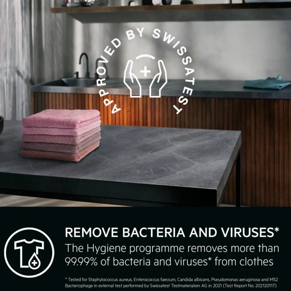 | SpecialCare Wash-to-Dry mukautuu jokaiseen kangastyyppiin ja mahdollistaa hellävaraisen, mutta tehokkaan puhdistuksen. Tämä Woolmark Blue -sertifioitu kone pesee ja kuivaa arkivaatteita, herkkiä tekstiilejä ja villavaatteita. Se myös säilyttää ulkoiluvaatteiden kosteussuojan. |