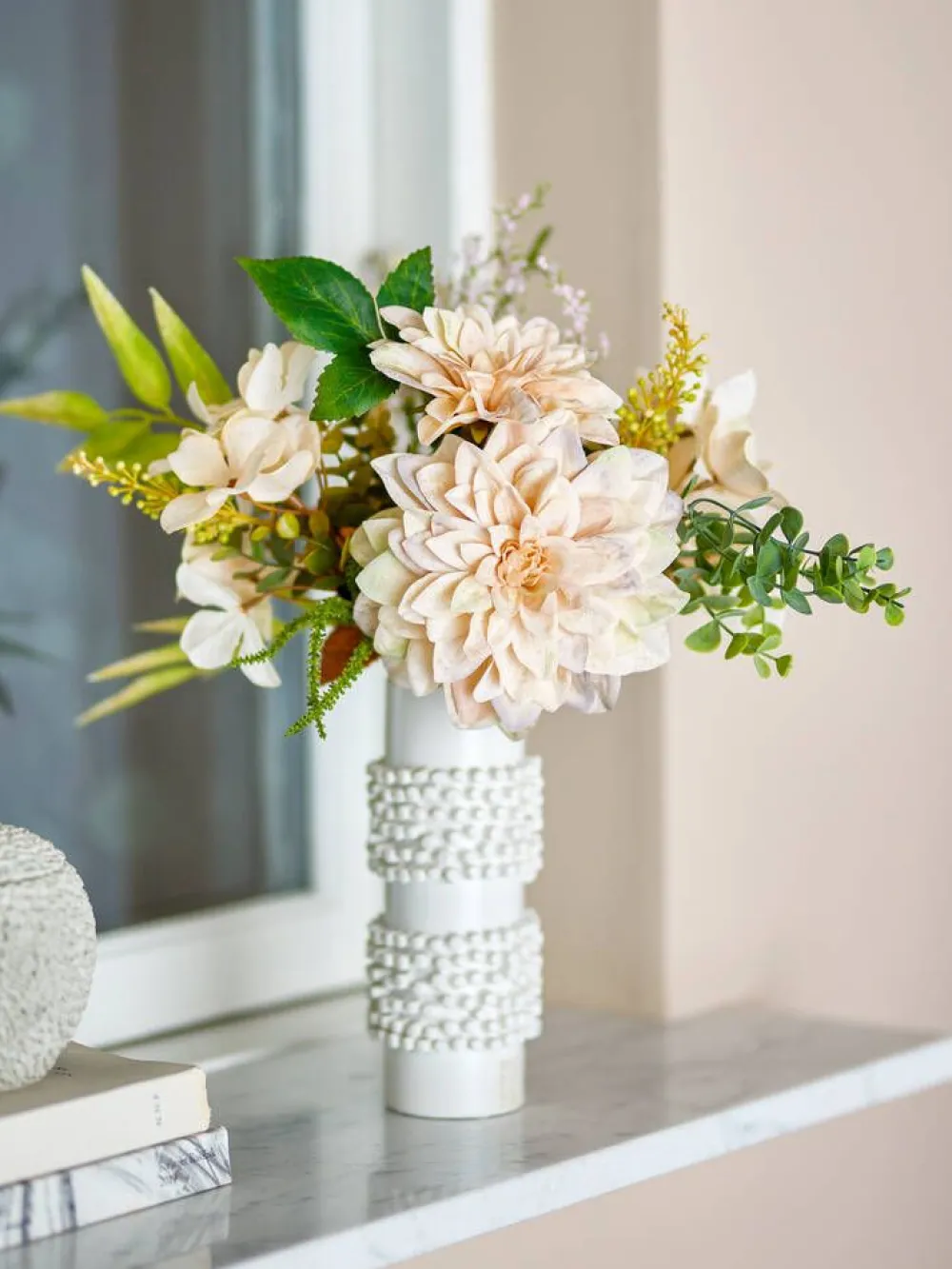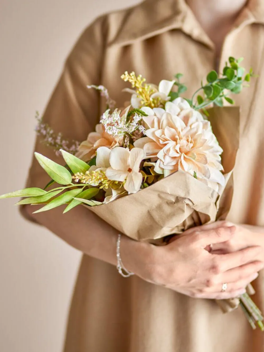| Käsittele varoen, jotta lehtiä ja kukintoja ei rikkoudu. Ennen käyttöä varret tai kukkakimput on leikattava ja aseteltava paikoilleen. |