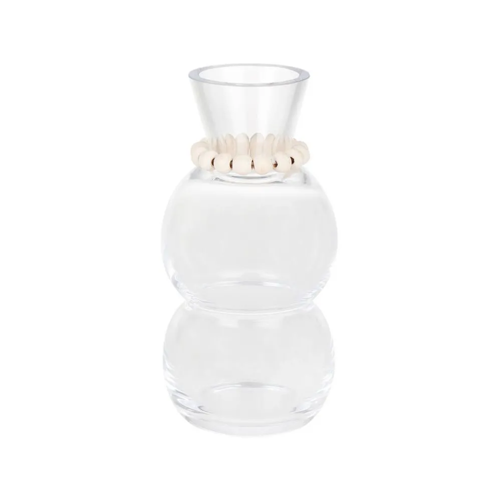 Aarikan Kupla-sarjan lasimaljakot ihastuttavat kattauksissa ja asetelmissa. Maljakkoa kiertää puuhelmikranssi. Jokaine…