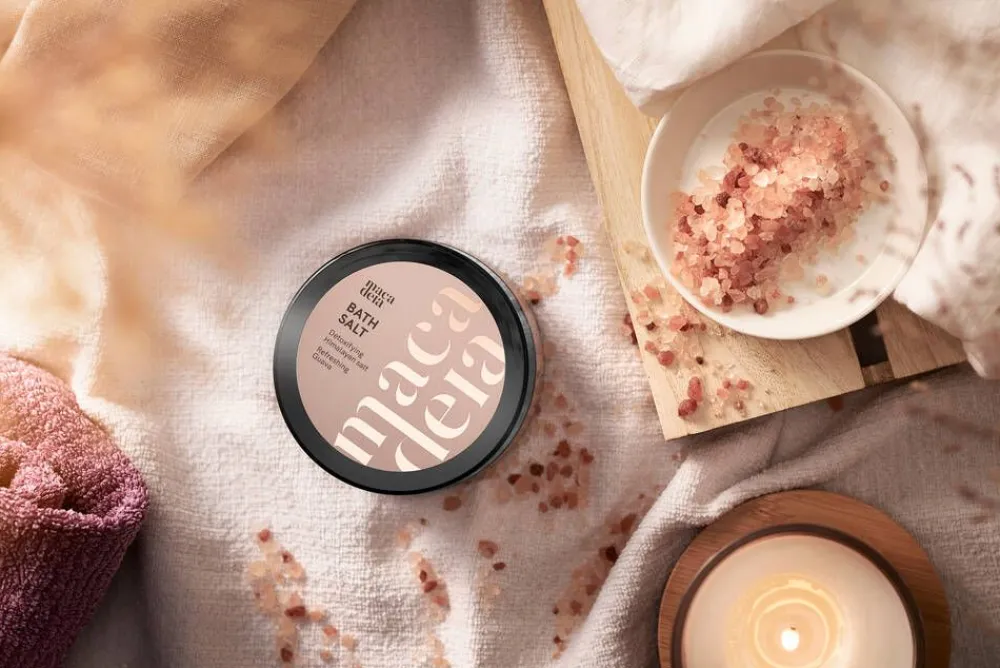 Himalajan kylpysuola rauhoittavalla manteliöljyllä. Mineraalipitoinen Himalajan kylpysuola auttaa kehoa puhdistumaan j…