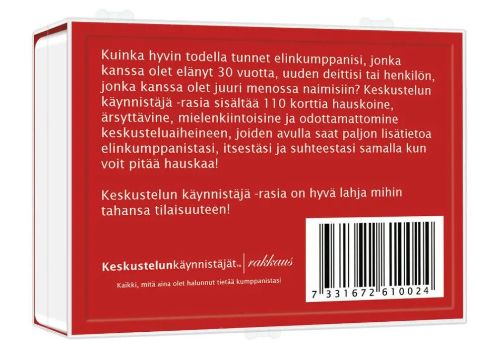 Kuinka hyvin tunnet elinkumppanisi tai uuden deittisi? Sisältää 110 kysymyskorttia mielenkiintoisine keskusteluaihein…