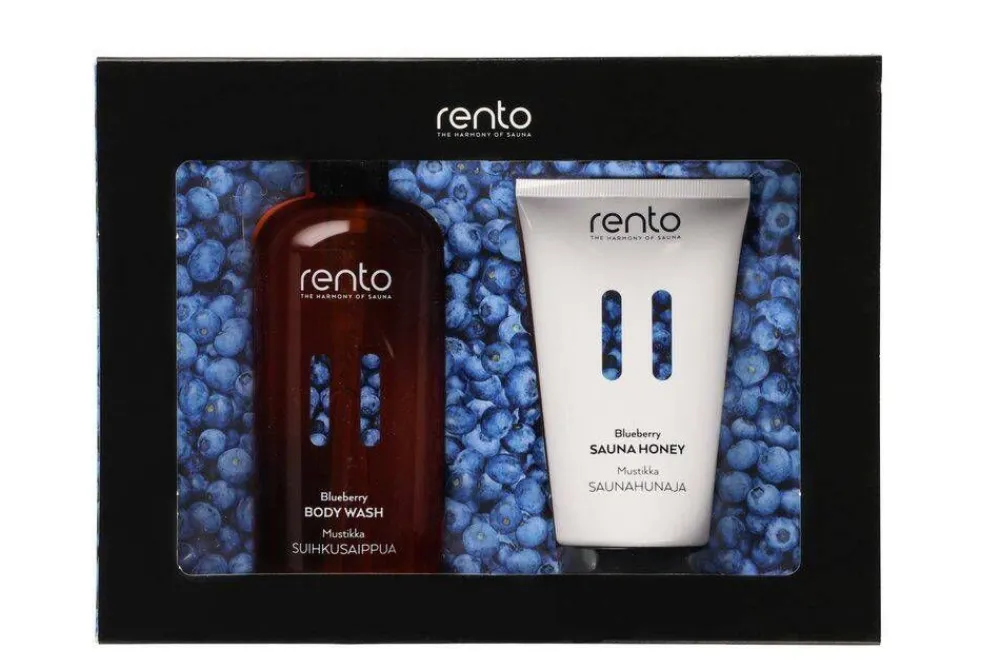 Upea lahjapakkaus nautinnollisiin saunahetkiin. Sisältää mustikantuoksuisen 400 ml suihkusaippuan pumppupullossa ja 1…