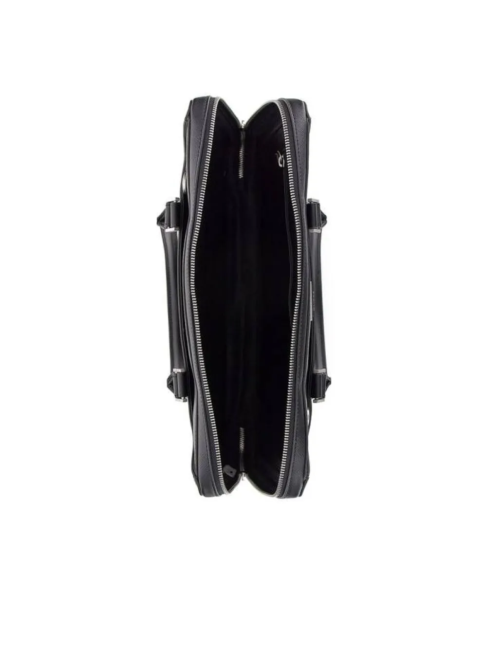 Ajattoman tyylikäs läppärilaukku tukevilla käsikahvoilla ja säädettävällä olkahihnalla. Edessä on pieni Guess-…