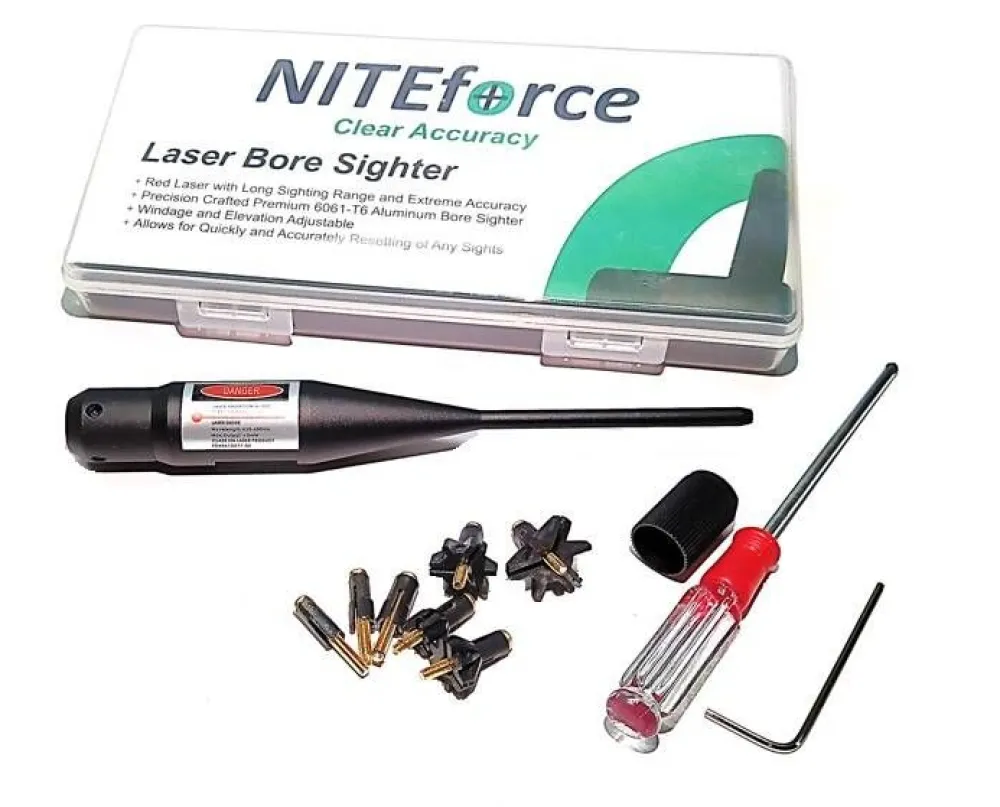 | NITEforce Laser Bore Sighter kohdistus setin mukana tulee kara-adapterit .177 (4.5mm) – 50 kaliibereille sekä 12-20kal joten saman laser kohdistimen avulla voit tarkkuuttaa eri kaliiberin aseet. |