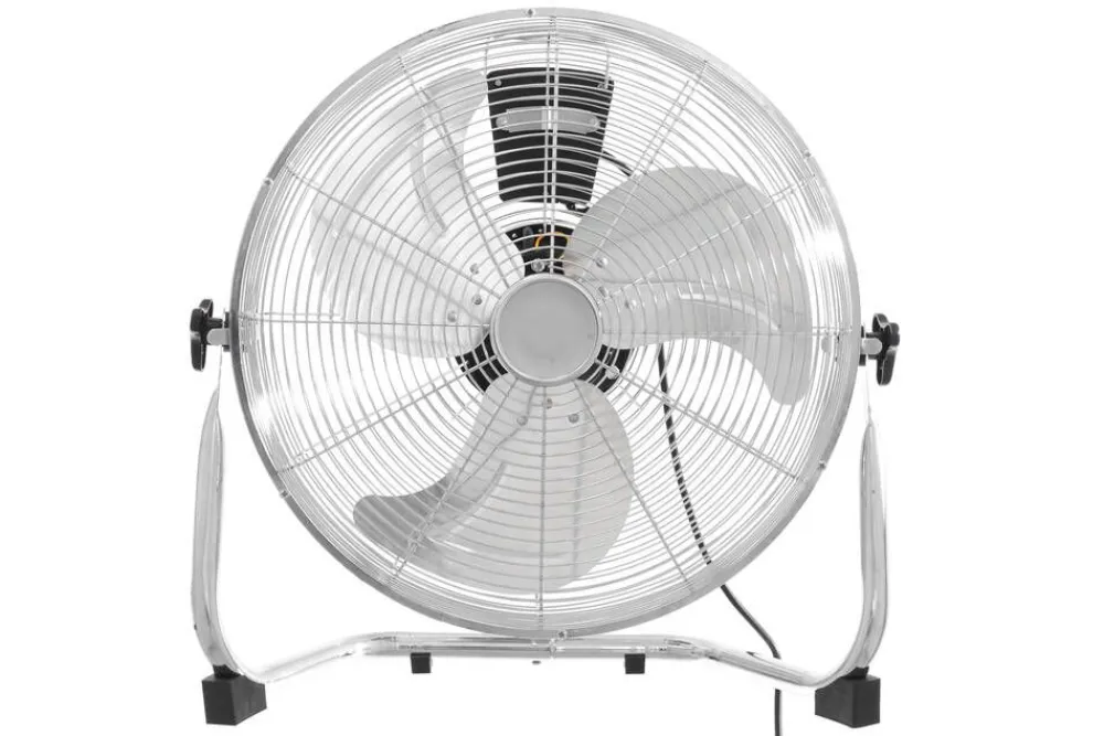 Erittäin tehokas kolmelapainen lattiatuuletin kromatulla viimeistelyllä, metallilavoilla ja täysmetallirakenteella. K…