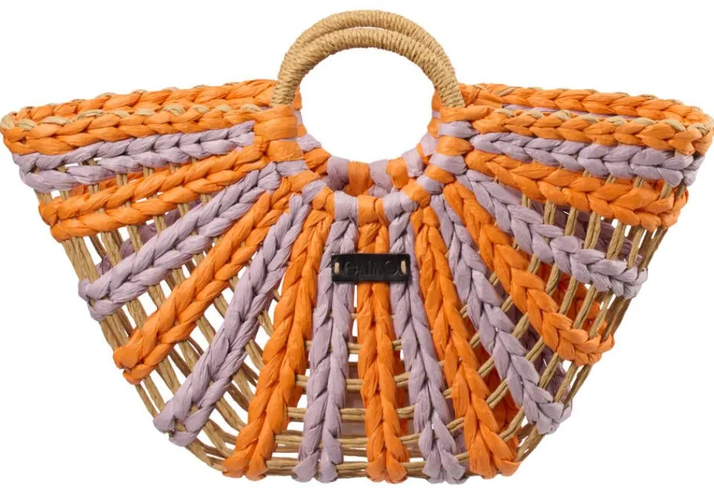 Kesäinen vuoriton paperinarusta punottu laukku tyylikkäillä pyöreillä käsikahvoilla. Laukussa on mukana puuvillain…
