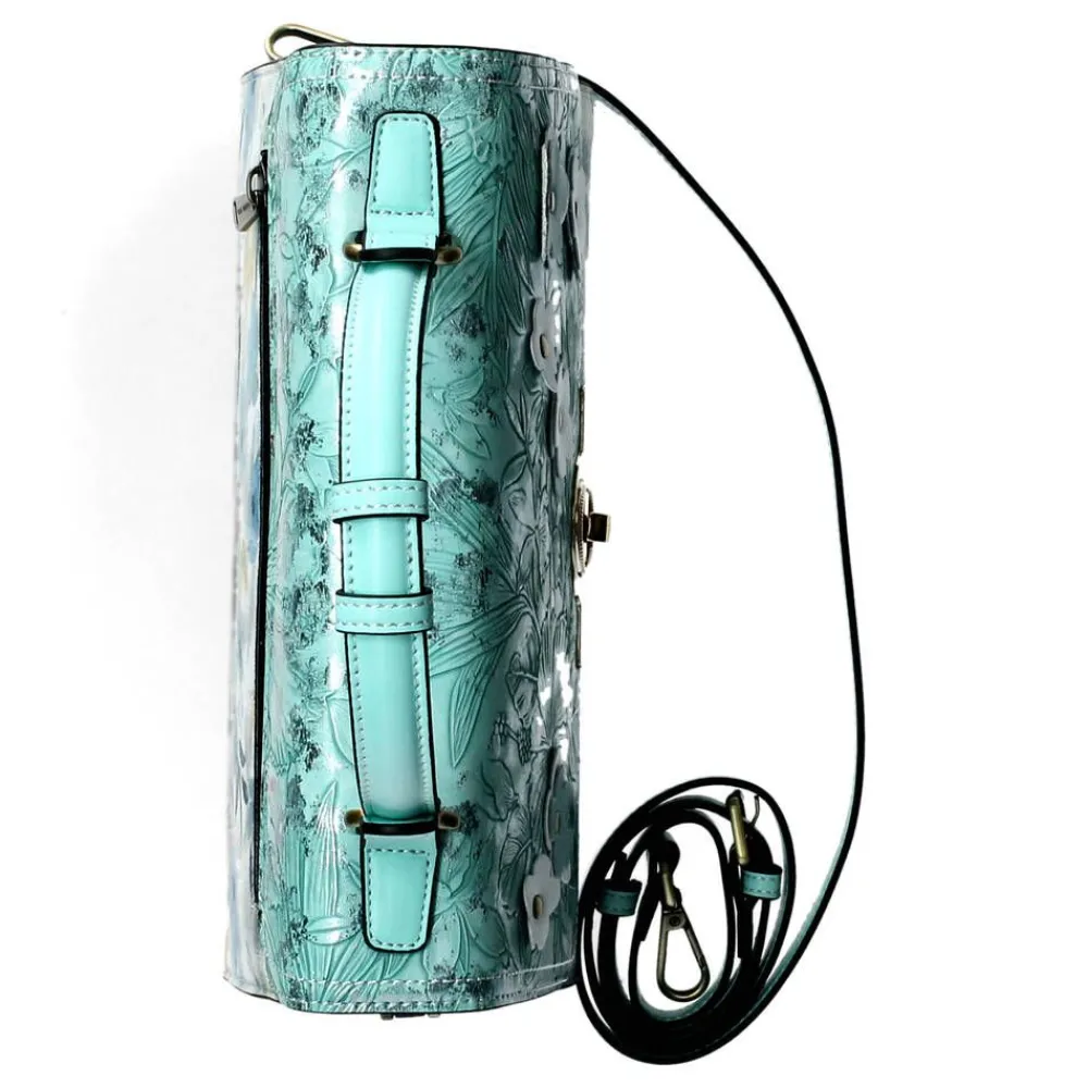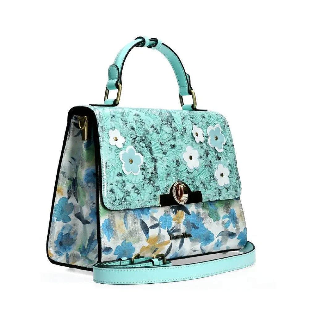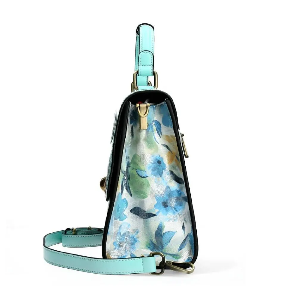Tunnistettavan värikäs Laura Vita laukku uniikilla muotoilulla. Tähän malliin kuuluu irrotettava olkahihna ja käsik…