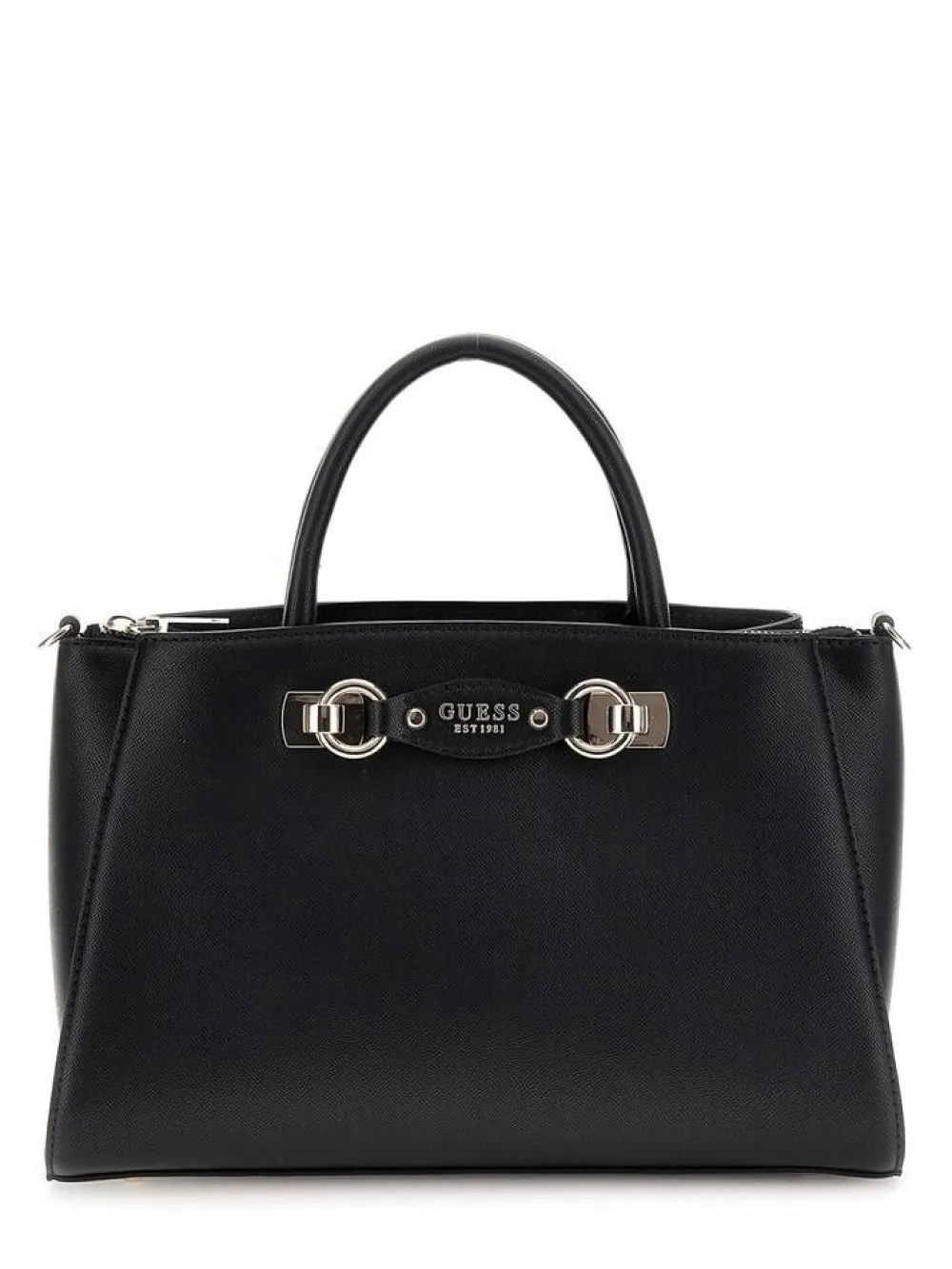 Klassisen tyylikäs keinonahkapintainen laukku kahdella magneettikiinnitteisellä lokerolla, joiden välissä on vetoket…