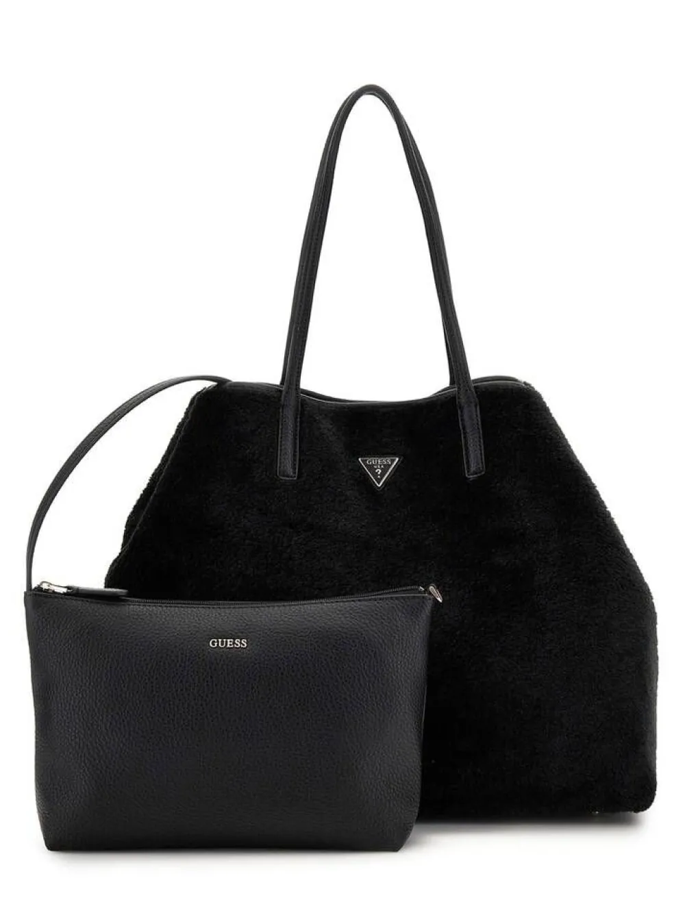Trendikäs tilava laukku, jossa on vetoketjullinen pikkulaukku mukana. Isomman laukun ulkopuoli on synteettista karvapin…