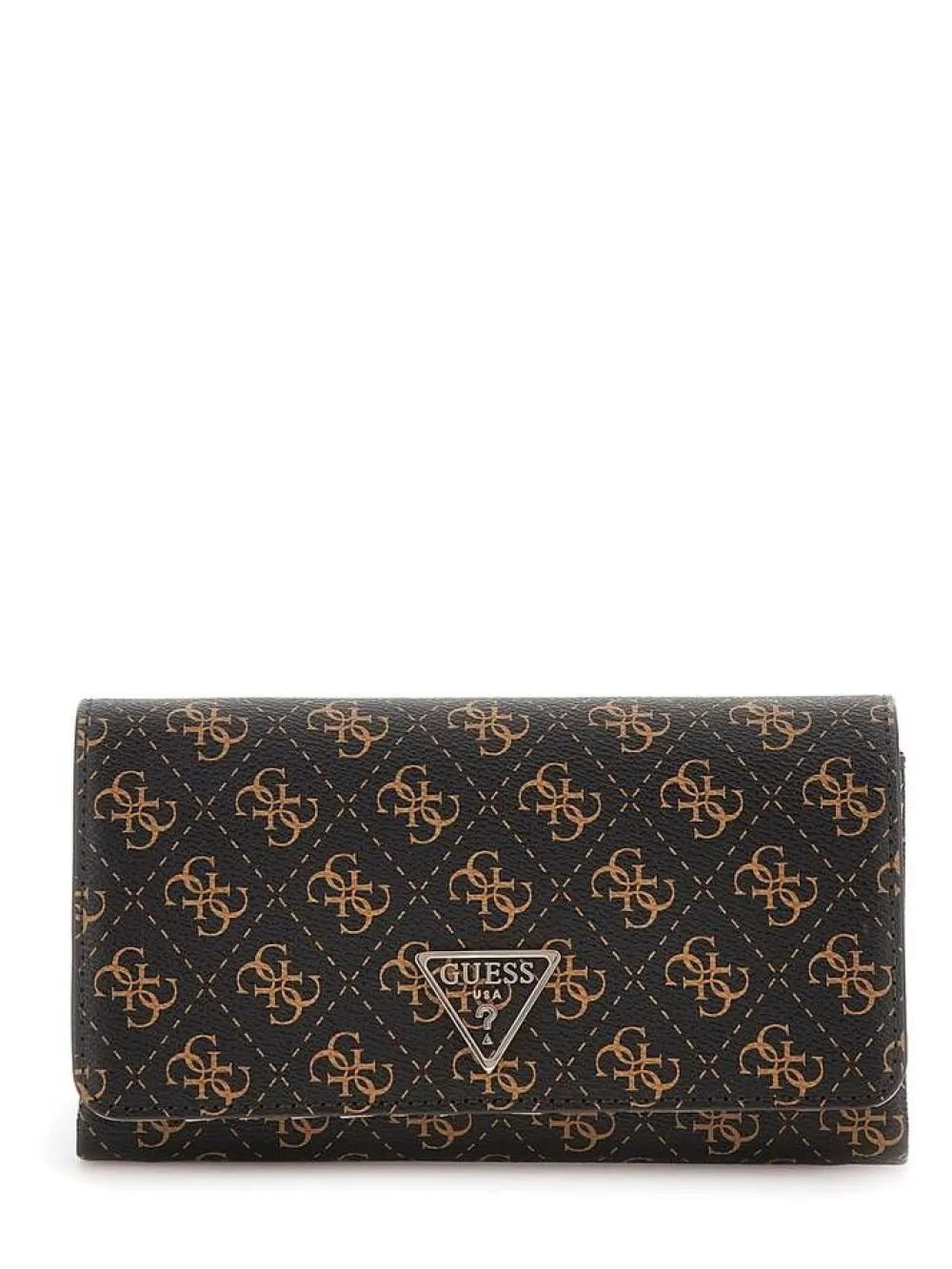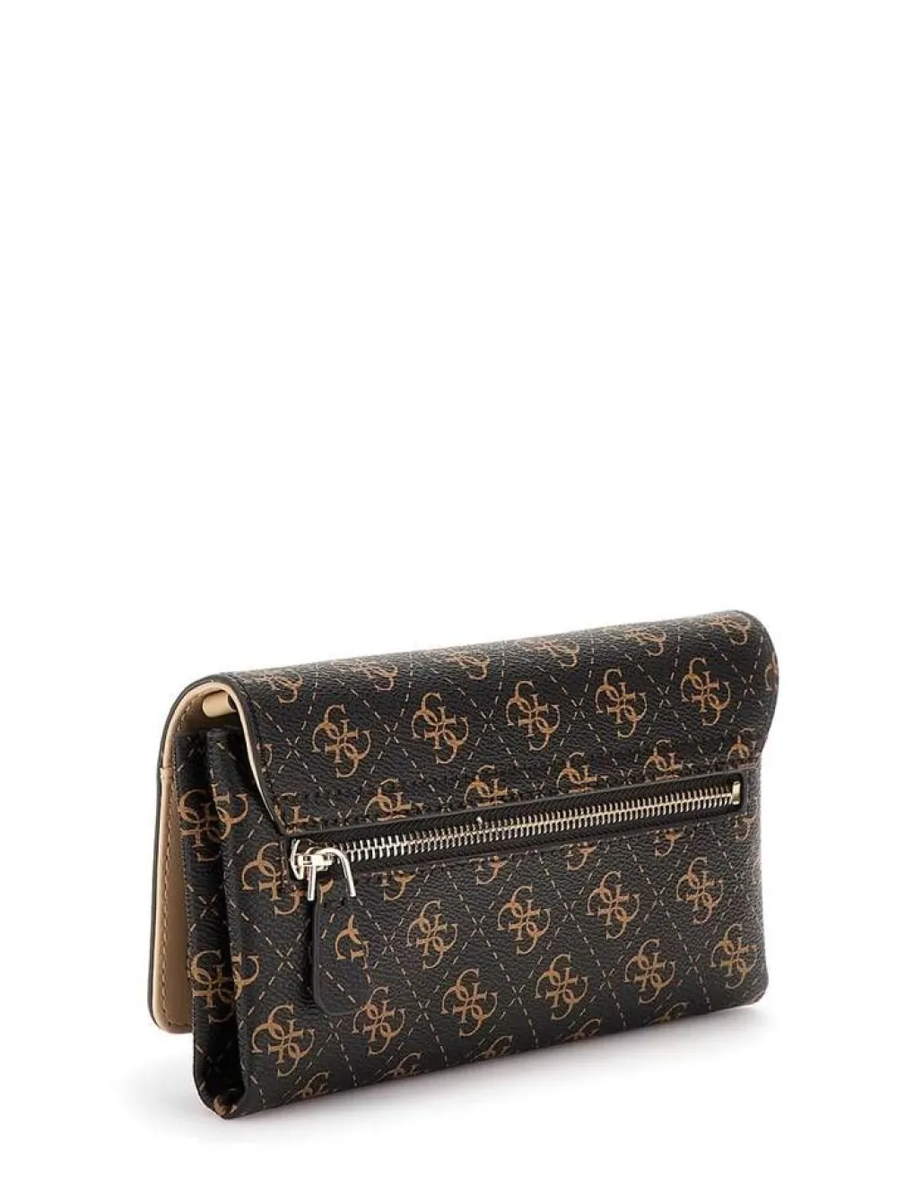 Klassinen leveän mallinen pikkulaukku läppäkannella, jossa on magneettinappi. Sisäpuoli on kaksiosainen, jonka väli…