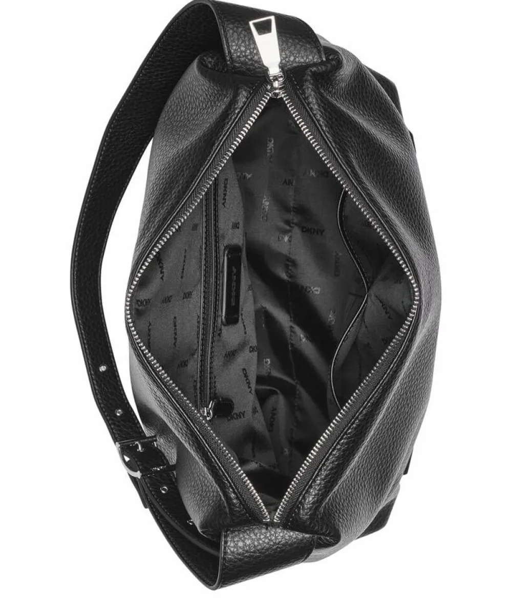 Trendikäs musta laukku etupuolen kohokuvioidulla DKNY-logolla, vetoketjukiinnityksellä ja säädettävällä olkahihna…