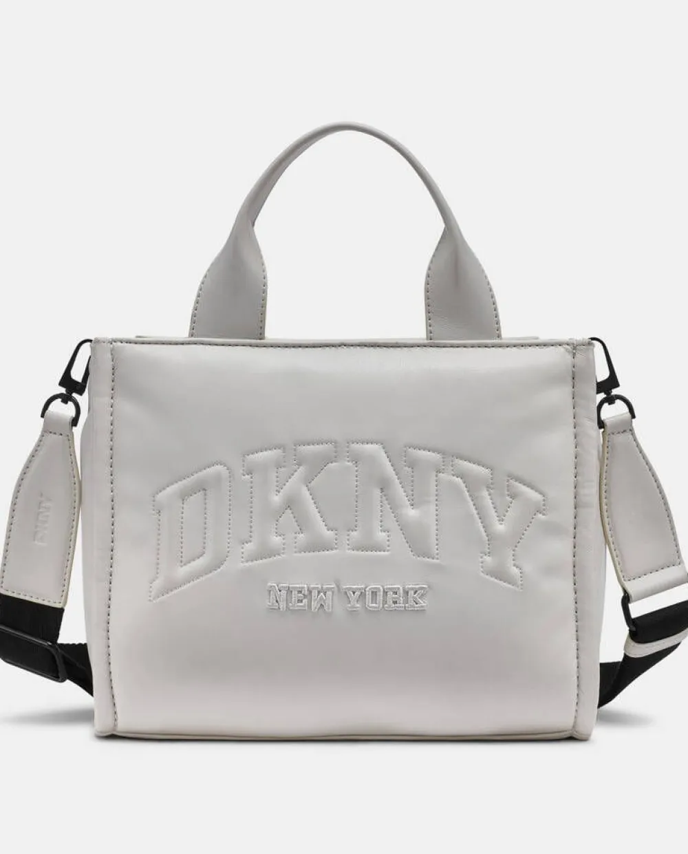 Muodikas laukku irrotettavalla ja säädettävällä leveämmällä kitarahihnalla. Tekonahkapinnassa on iso DKNY-teksti…