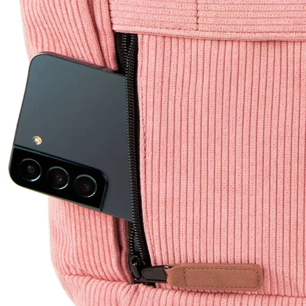 Tilava ja trendikäs laukku pehmeällä vakosamettipinnalla. Tekstiilipintainen ja -vuorinen malli, jossa vetoketjusulje…
