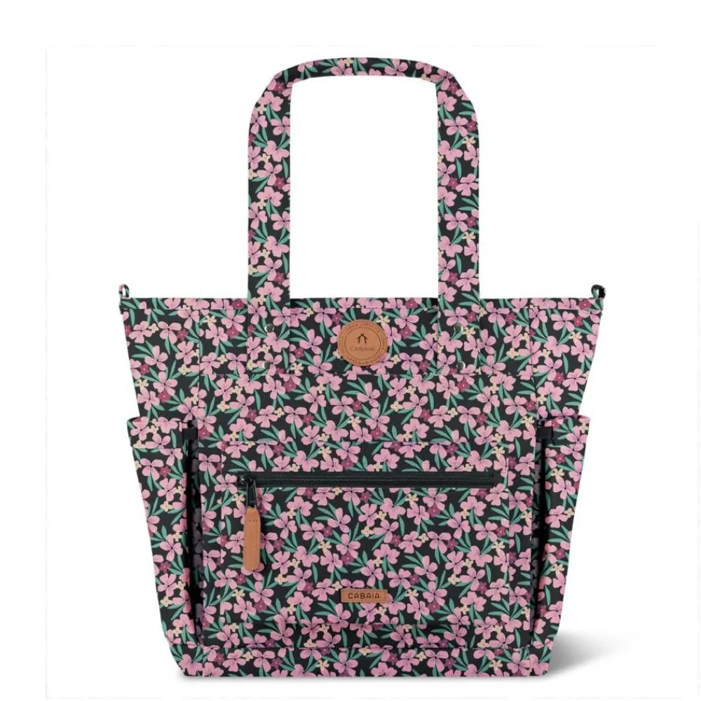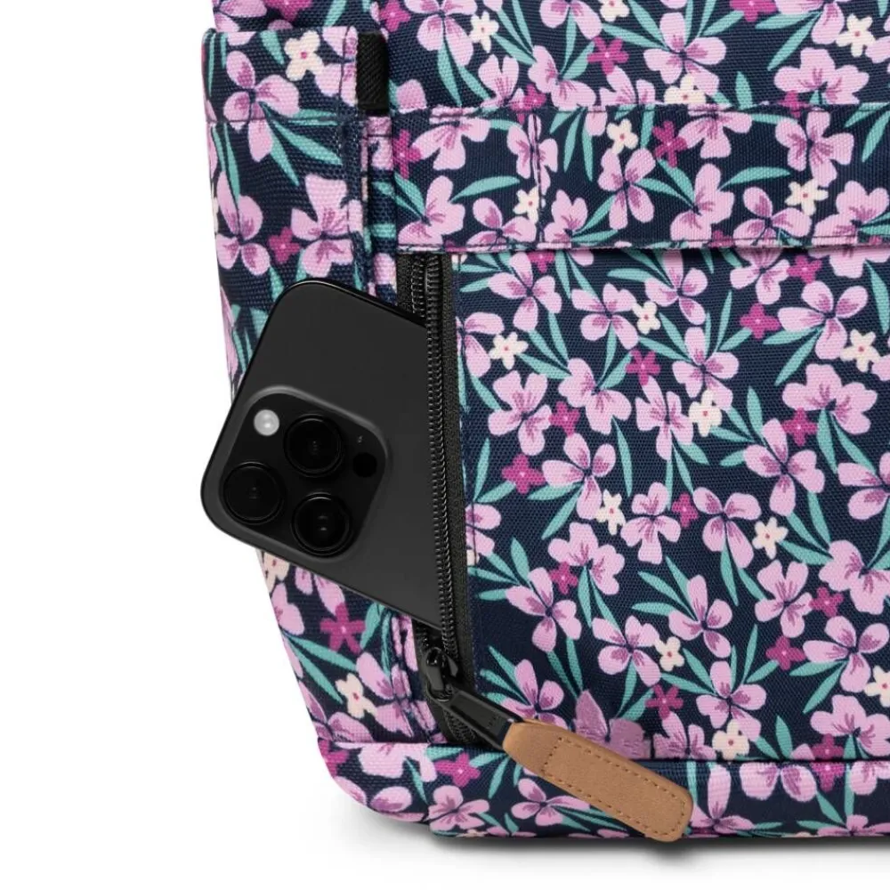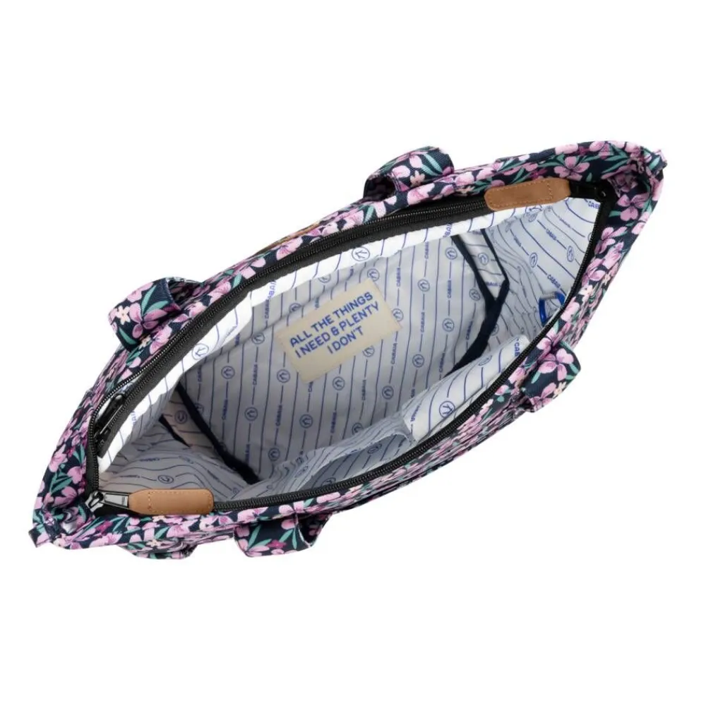 Tilava ja näyttävä laukku monivärisellä kuosilla. Tekstiilipintainen ja -vuorinen malli, jossa vetoketjusuljenta, k…