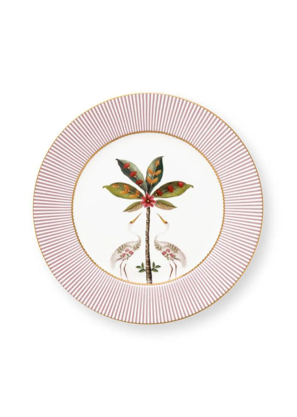 | La Majorelle -kokoelmassaan Pip kunnioittaa kauniita kasvitieteellisiä puutarhoja, joissa on suuri valikoima värikkäitä kukkia ja oksia ympäri maailmaa. Tämä eläväinen kukkien näyttely yhdistyy leikkisästi viittaukseen palmuihin ja majesteettisiin haikaroihin. Taustan pisteet ja raidat luovat tälle designille yllättävän yhdistelmän ja modernin säväyksen. La Majorelle -astiakokoelma on saatavilla kauniin vaaleanpunaisena ja upeana keltaisena, ja siihen kuuluu myös lasiesineitä, joissa on satumainen kultainen maisema. |