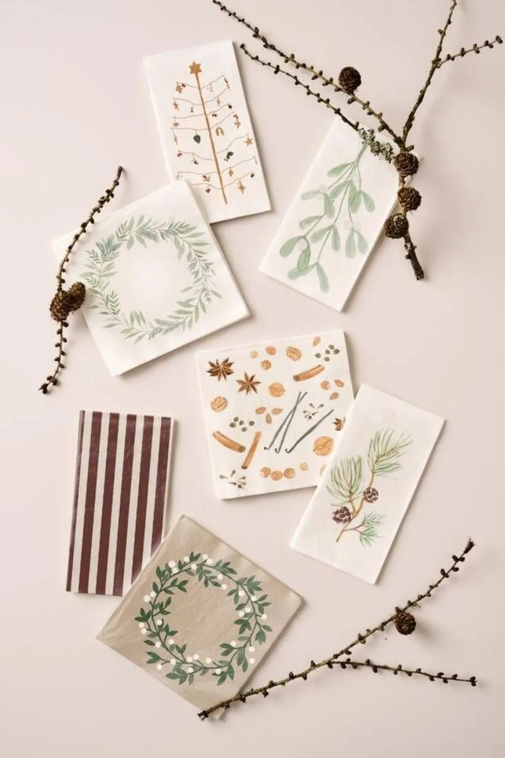 Tuoda joulun ja talven tunnelmaa kattaukseen näillä lautasliinoilla, joissa kauniina kuviona on mäntynoksia ja käpyj…