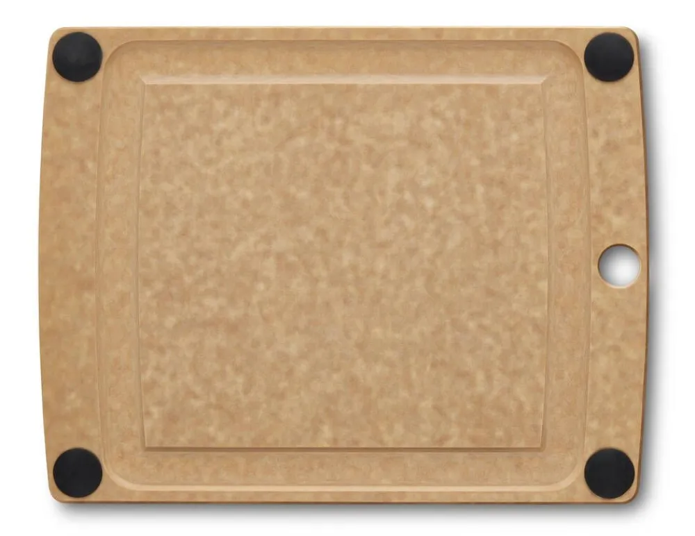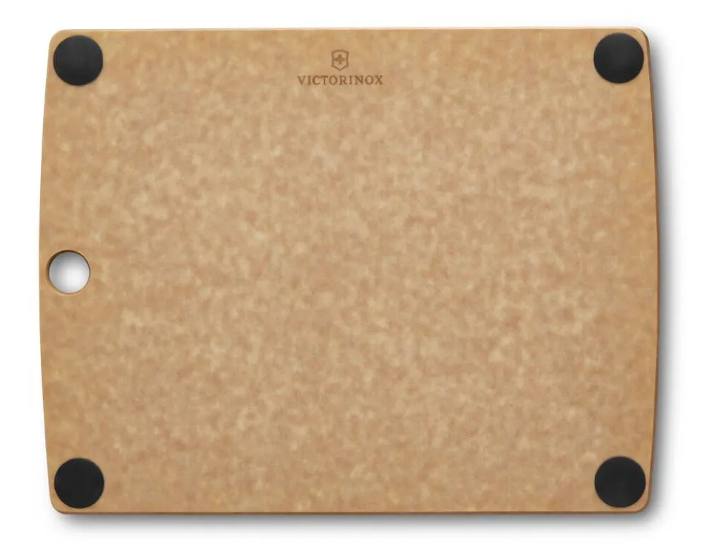 Victorinoxin Kitchen -leikkuulauta on valmistettu astianpesukoneen kestävästä, ympäristöystävällisestä paperikomposiittimateriaalista, joka luontaisen kimmoisuutensa (””natural bounce””) ansiosta on erittäin hellä veitsen terälle. Leikkuulauta kestää 175 °C:n kuumuuden, joten sitä voi käyttää myös pannunalusena. Ulkoreunaa kiertävä ura kerää esim. lihojen ja hedelmien käsittelyssä syntyvät nesteet, ja myös kulmien liukuesteet sekä ripustusreikä lisäävät leikkuulaudan käytännöllisyyttä. Materiaali koostuu paperiarkeista, jotka prässätään yhteen tasaisen lämmön ja paineen avulla. Lopputuloksena on vankka, tasapainoinen ja kestävä materiaali. Tuotteet valmistetaan Epicureanin tehtaalla Wisconsinissa USA:ssa. Kaikki tuotantoprosessin aikana syntyvä jäte ja ylijäämämateriaali pyritään minimoimaan, käyttämään uudelleen tai kierrättämään aina kun mahdollista. Myös lämpö otetaan talteen, ja käytetään varastotilojen lämmittämiseen talvella.