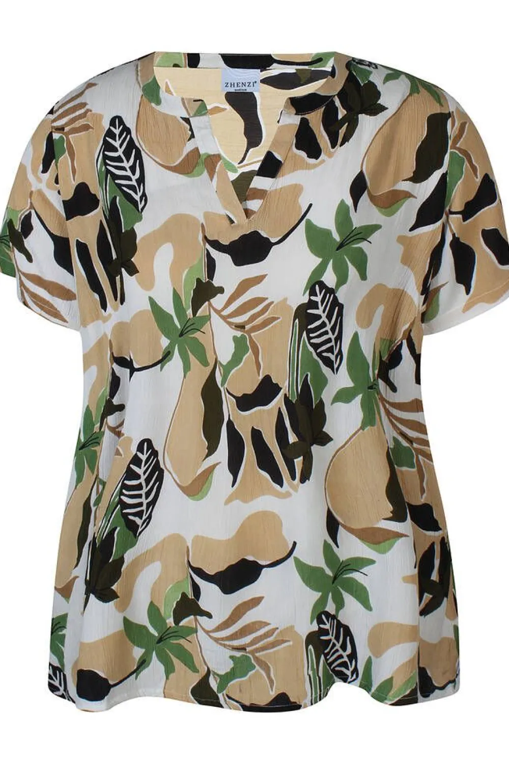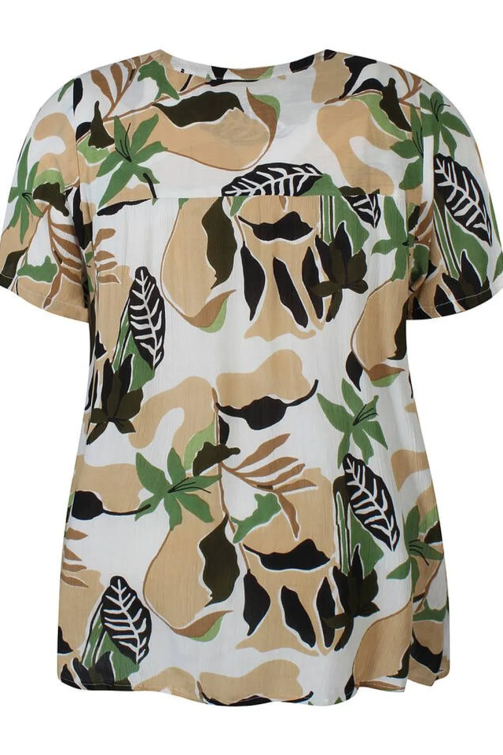 Kevyt A-linjainen pusero rypytettyä viskoosia. Puserossa on naisellinen v-pääntie, lyhyet hihat sekä kaunis monivär…