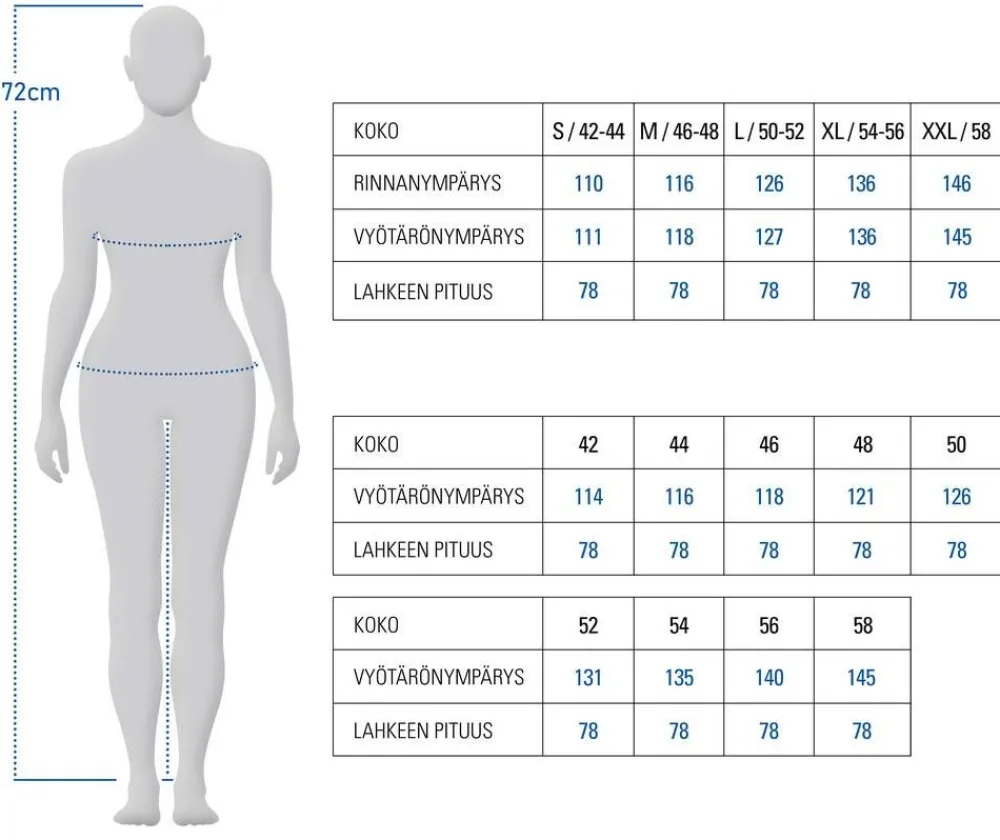 | Keskitakapituus (koko M): 72 cm |