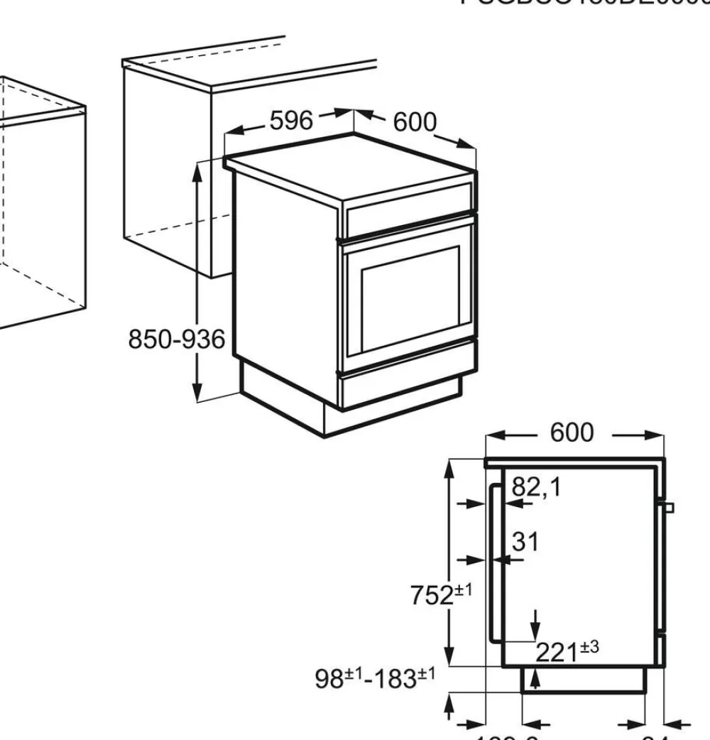 | Lattialiesi sähköuunilla ja keittotasolla. Monitoimiuuni kiertoilmavastuksella. Keittotaso: Induktiotaso. |