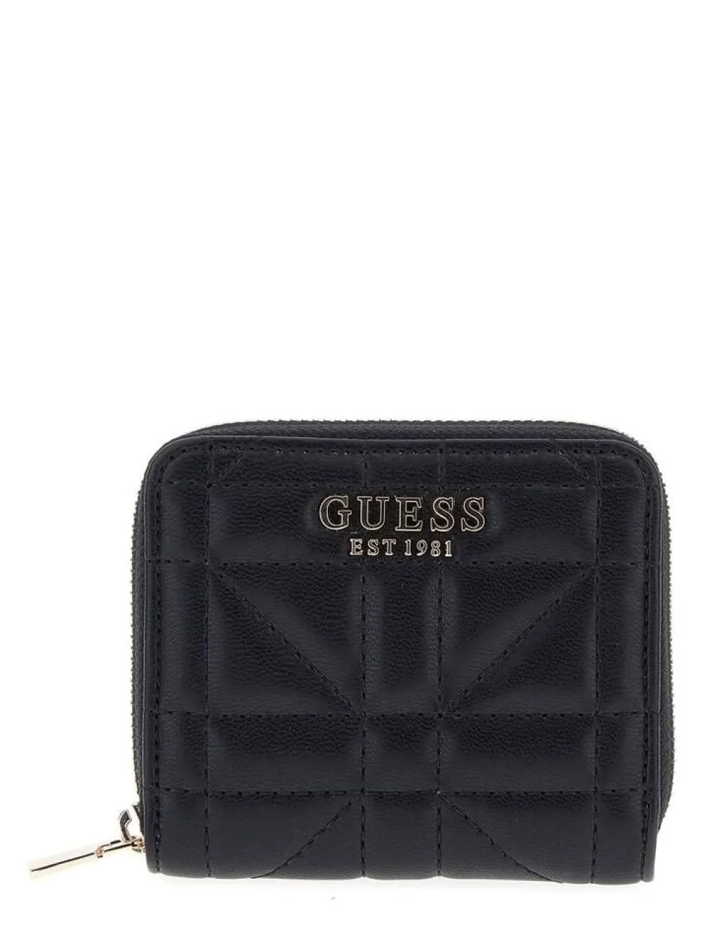 Tikkipintainen pikkulompakko etupuolen Guess-kirjainlogolla.Lisää tietojaKoko: 11 x 9 x 2 cmKiinnitys:VetoketjuMateria…