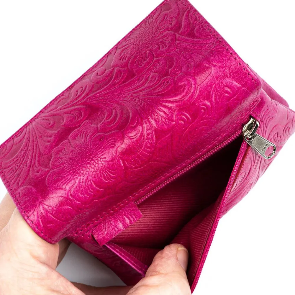 Tyylikäs ja näppärä nahkainen kukkaro, jossa on yhdistettynä korttikotelo ja kaunis kuviopainatus. Neppariläpän a…