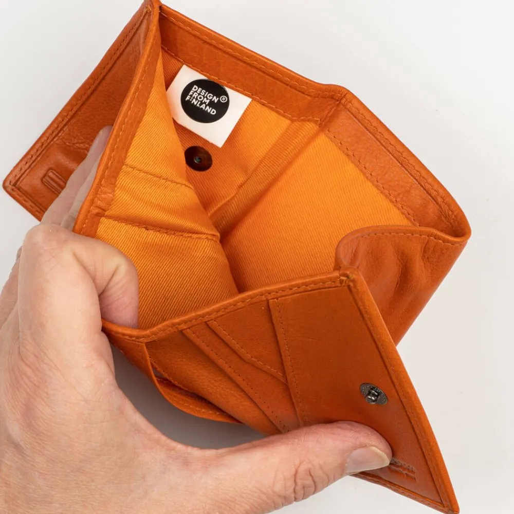 Nepparilla suljettava RFID-suojattu korttilompakko pirteän oranssissa sävyssä. Lompakossa on seitsemän korttipaikkaa…
