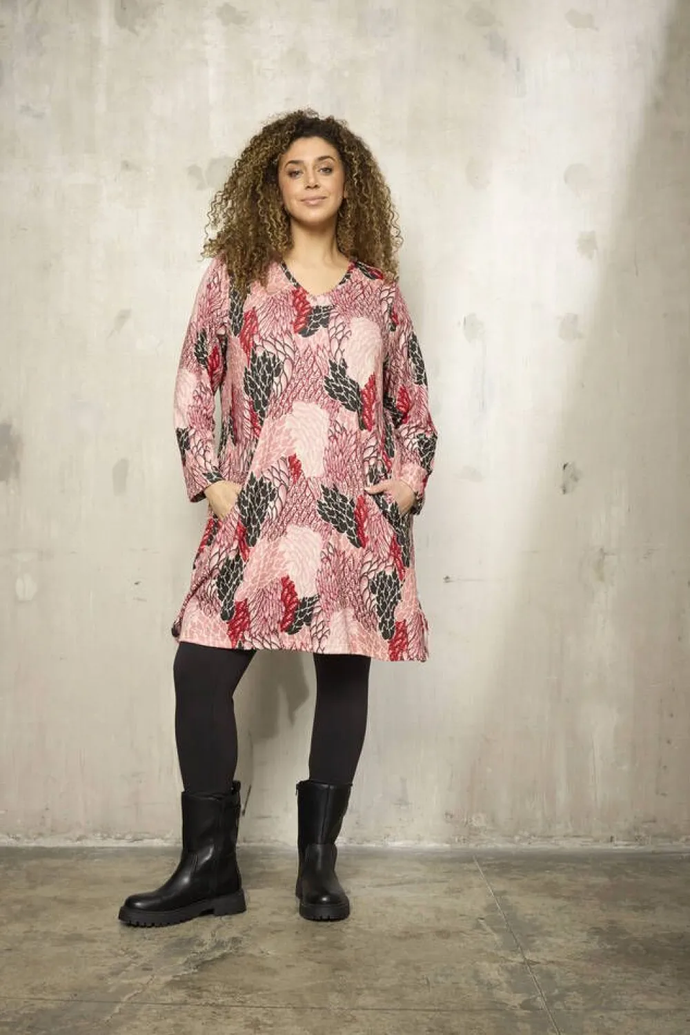 Raikas printtikuosillinen tunikamekko taskuilla ja V-pääntiellä.Lisää tietojaPlus-mitoitusMateriaali:95% polyesteri…