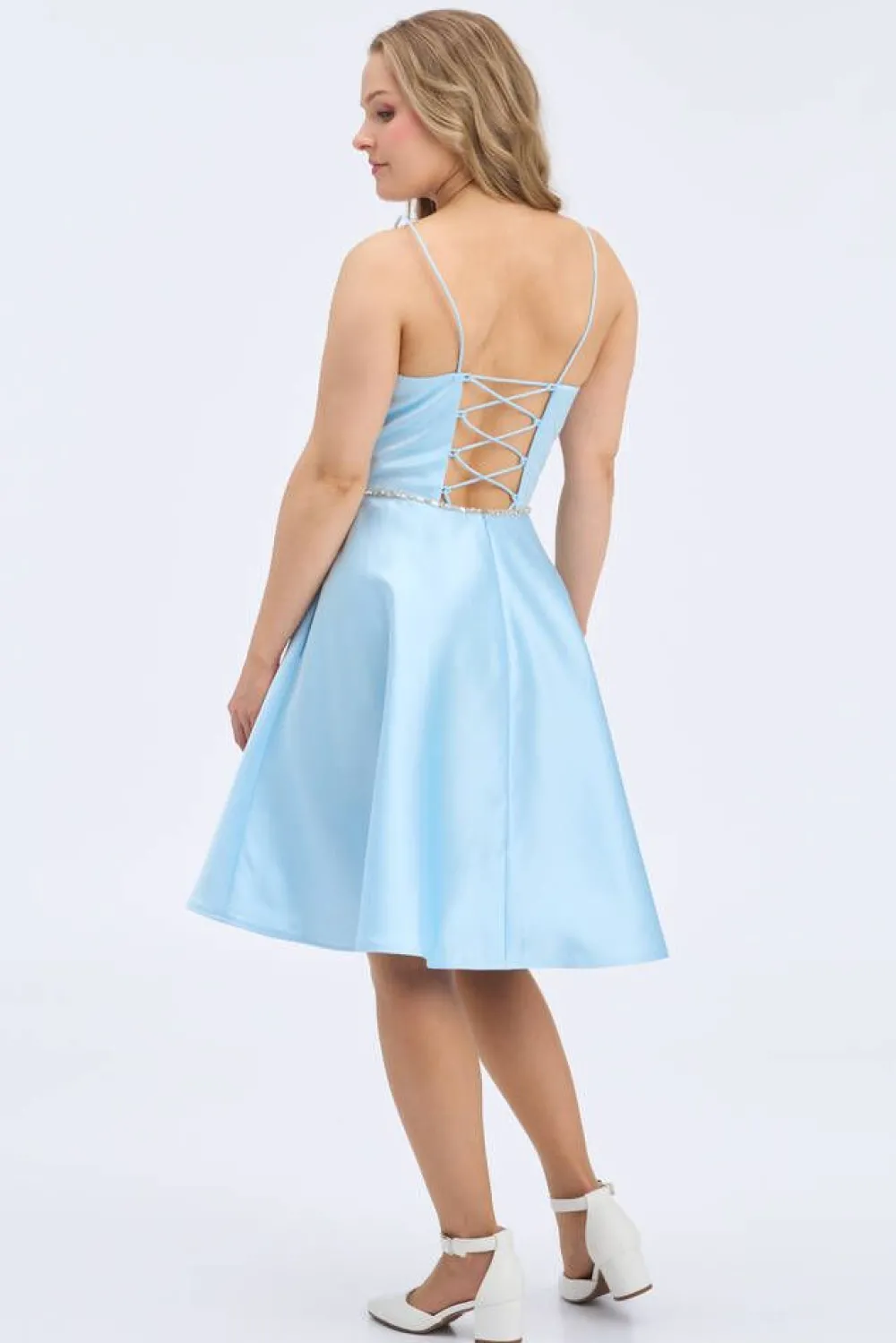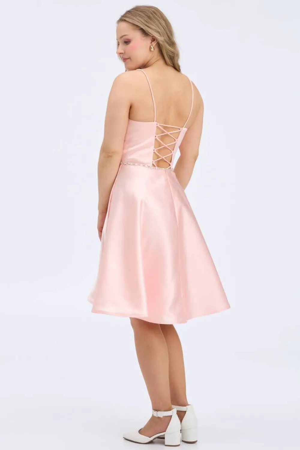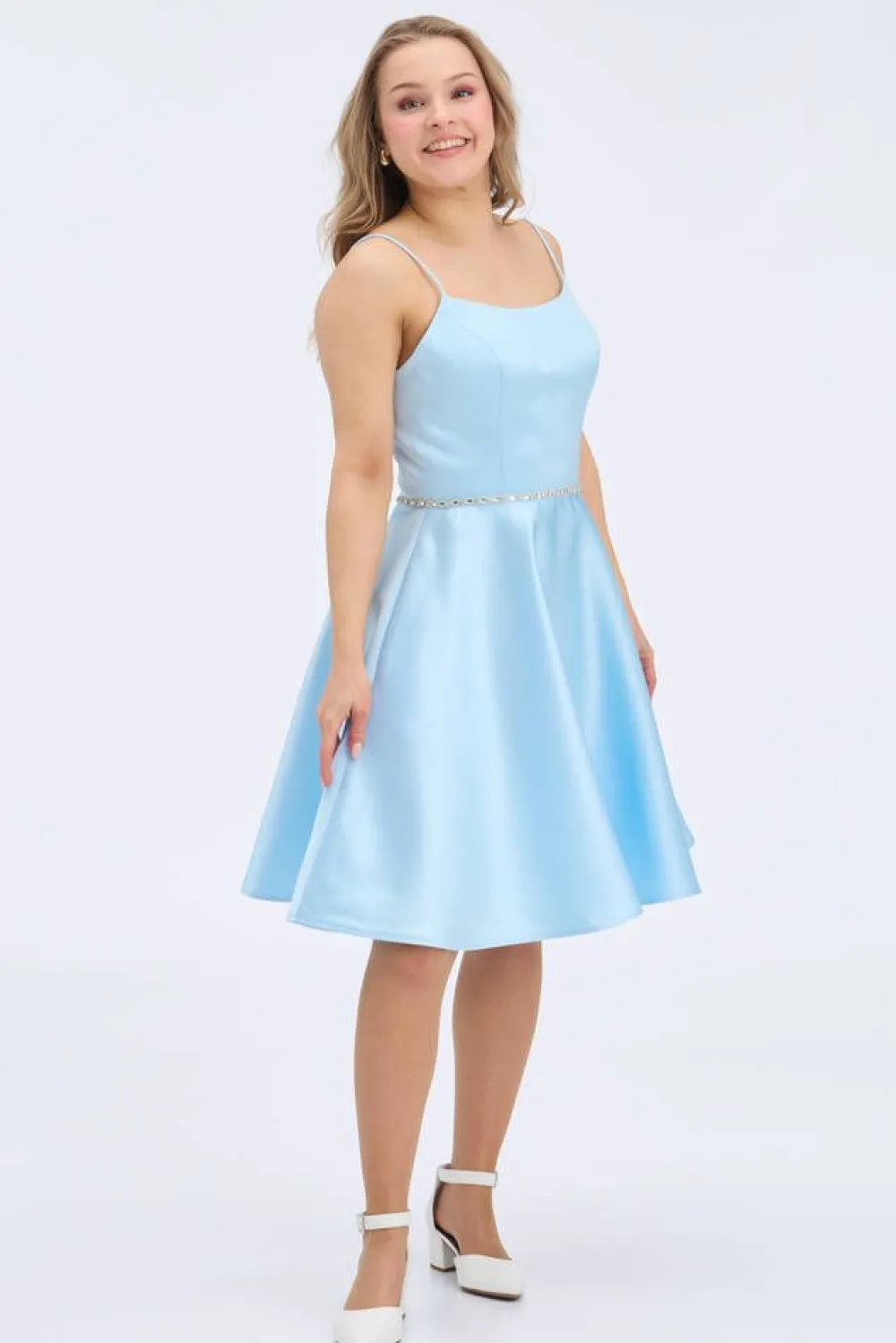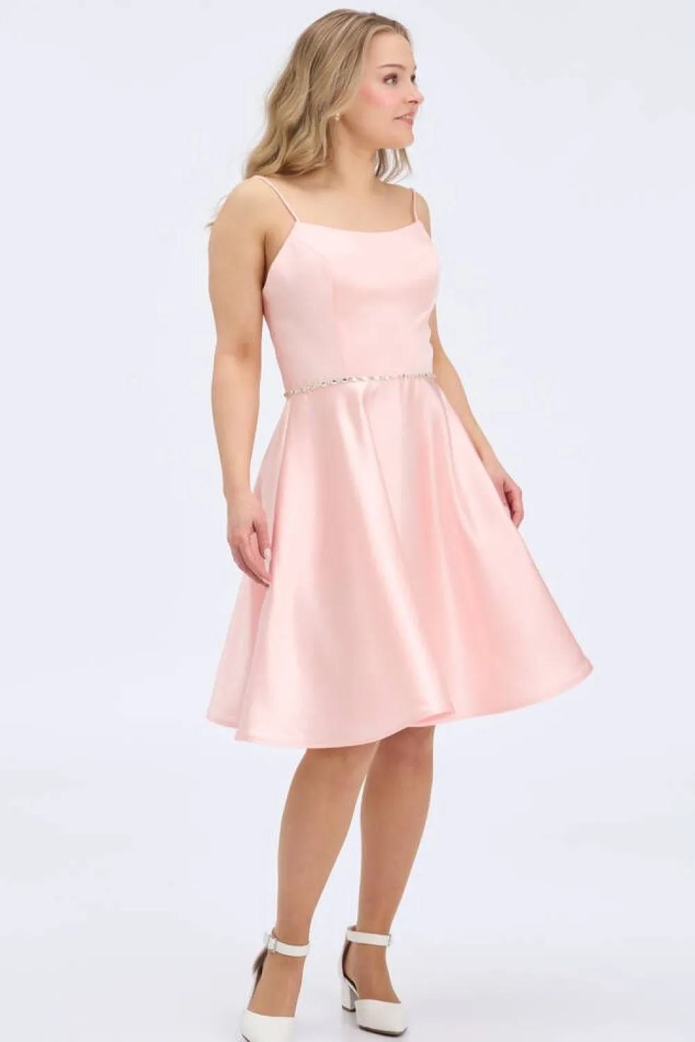 Kaunis satiininen juhlamekko vyötärön kimaltavalla koristepannalla. Laadukas satiinikangas ja ohuet olkaimet luovat m…