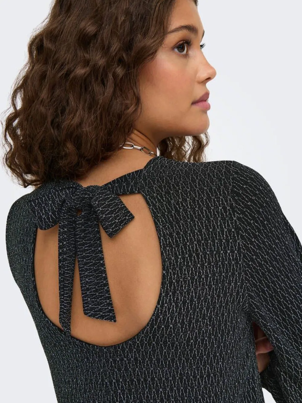 Upea nuorekas pitkähihainen mekko väljällä istuvuudella ja hillityllä glitterkuosilla. Solmittava nauha niskassa.Li…