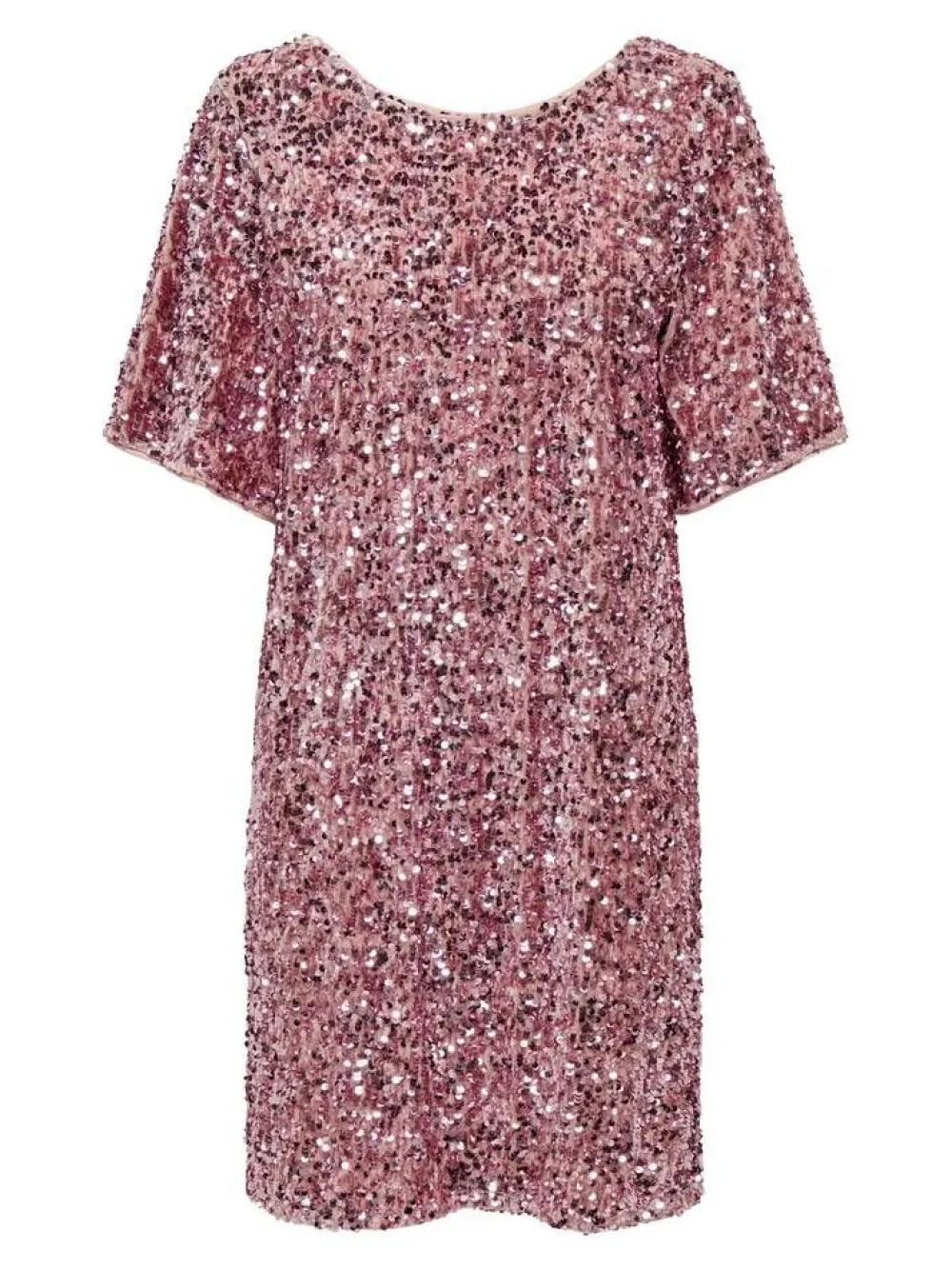 Trendikäs paljettimekko väljällä mallilla on täydellinen valinta juhlakauteen! Kahdessa värissä. Mekossa on avoin…