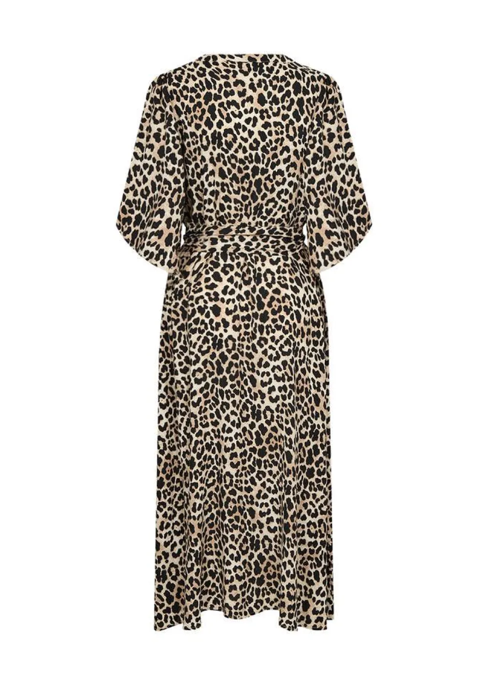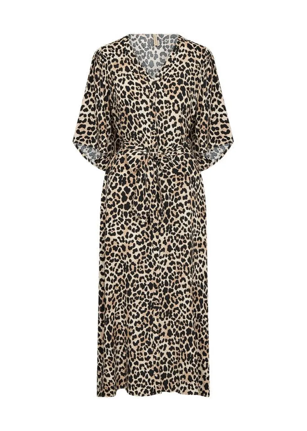 Trendikäs eläinkuosinen mekko, jonka helma ylettyy melkein nilkkoihin asti. Edessä on napit ja mekossa on kauniit lyh…