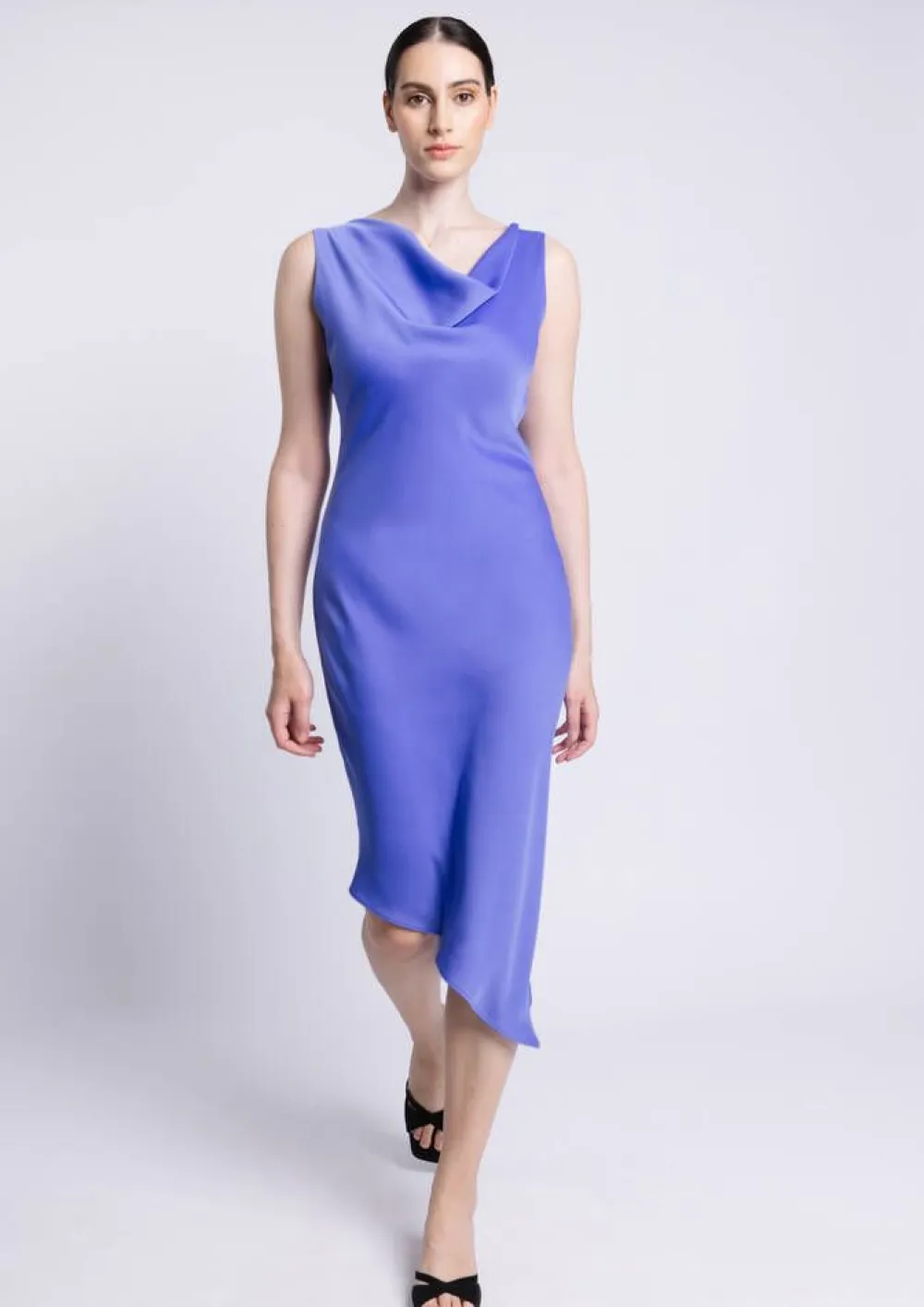 Elegantti Waterlily- mekko on kauniisti laskeutuva mekko juhlaan. Materiaalina näyttävä ja upeasti hehkuva siniliila …