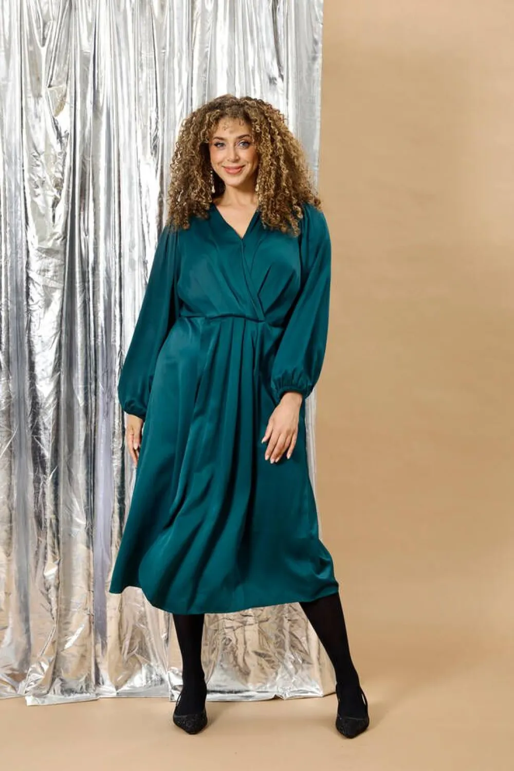 Näyttävä ja naisellinen satiinimekko saa sinut säväyttämään juhlakautena. Pussihihat ja rypytykset edessä tuova…